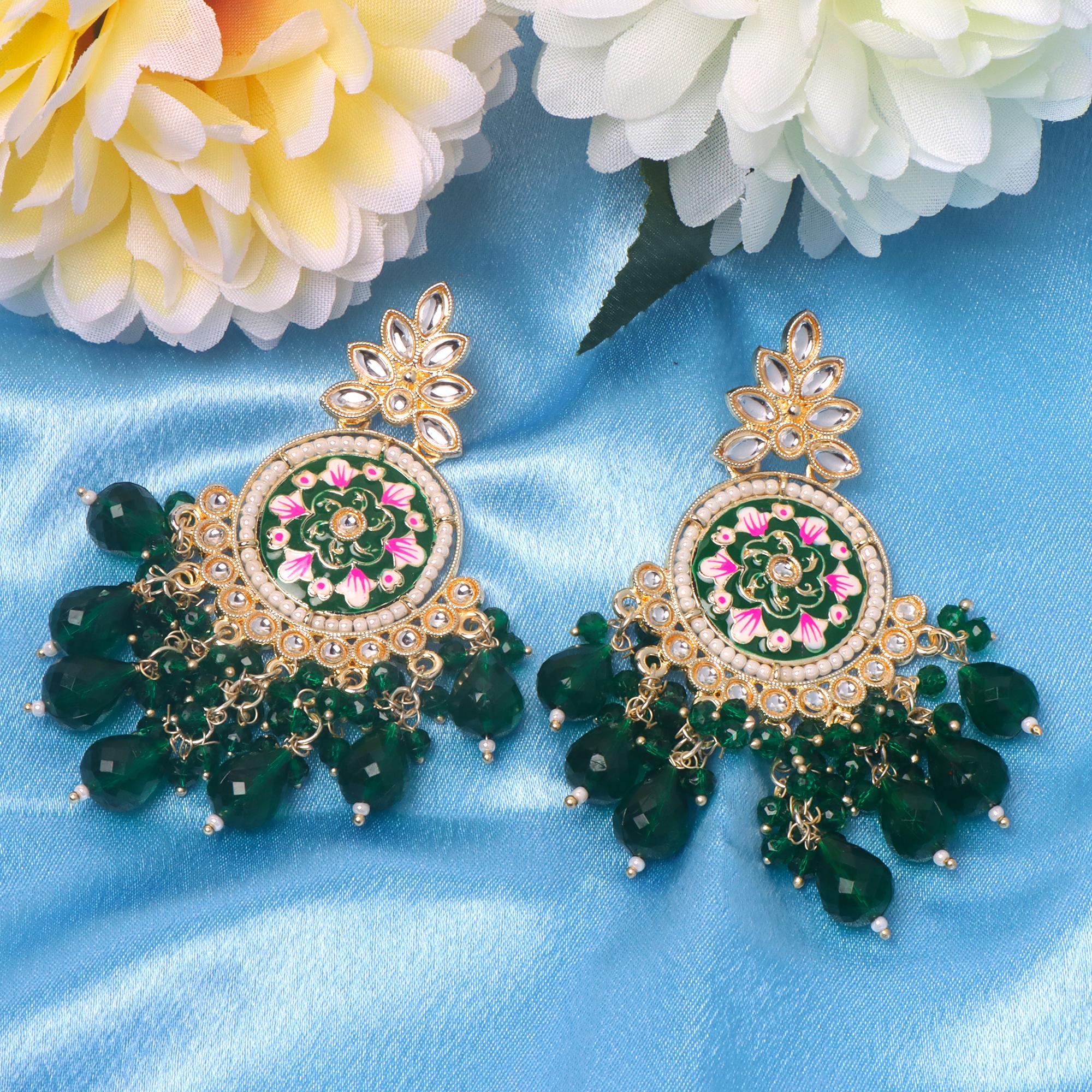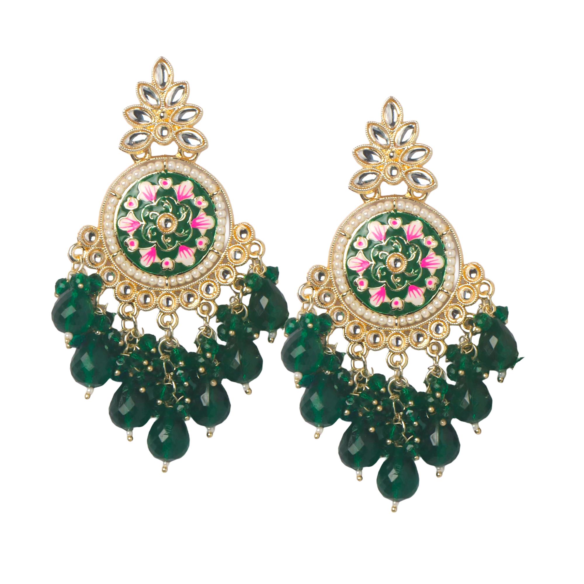 Handcrafted Meenakari Kundan Jhumka Earrings for Women | OrnaOra Ethnic Jewelry Collection - Dark Green