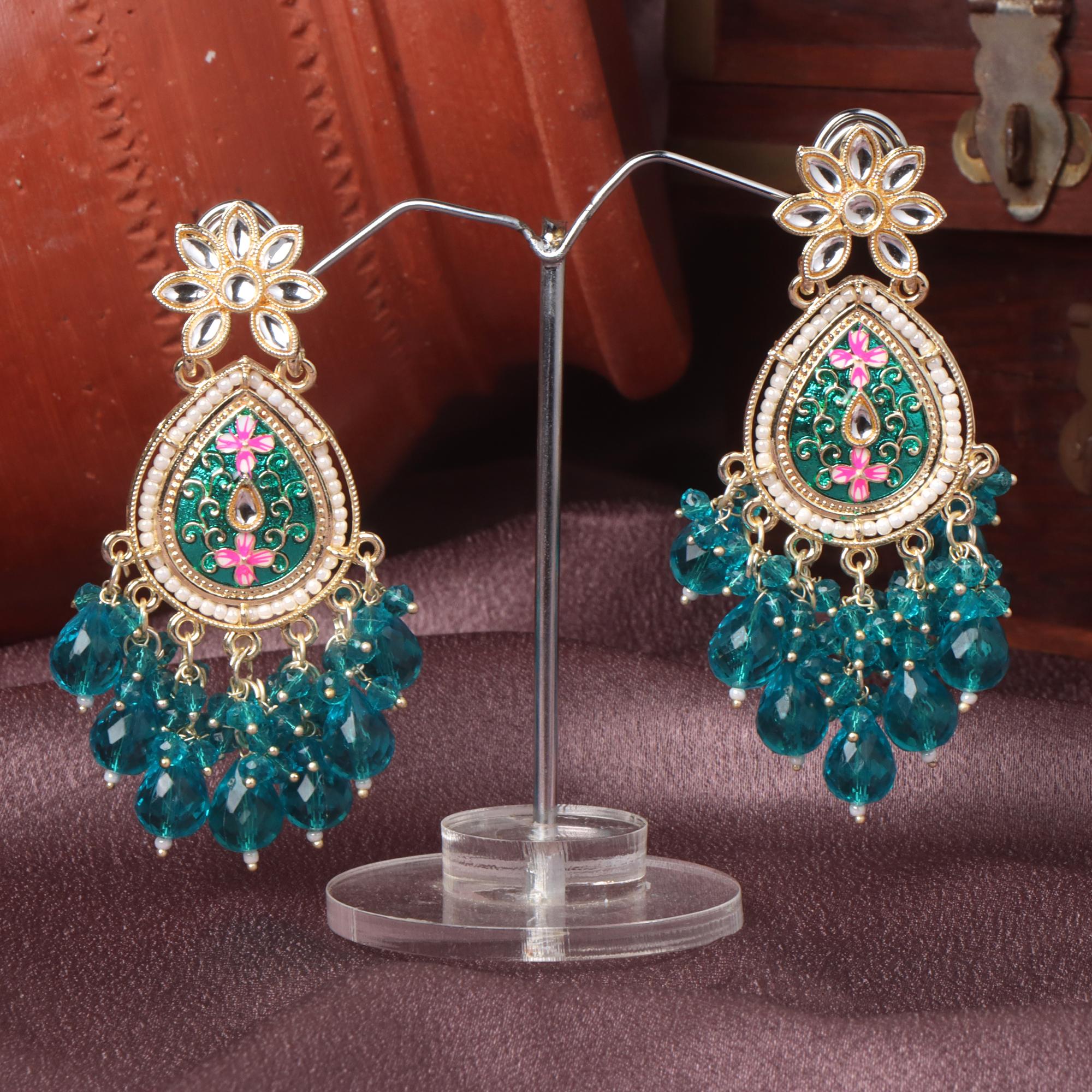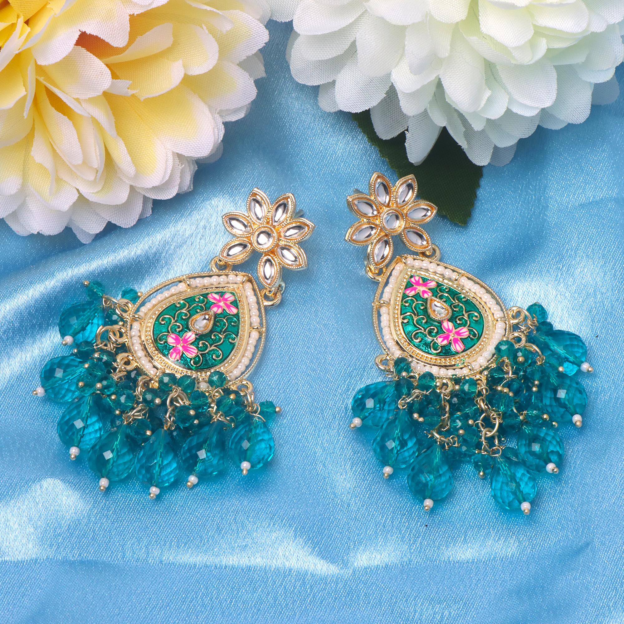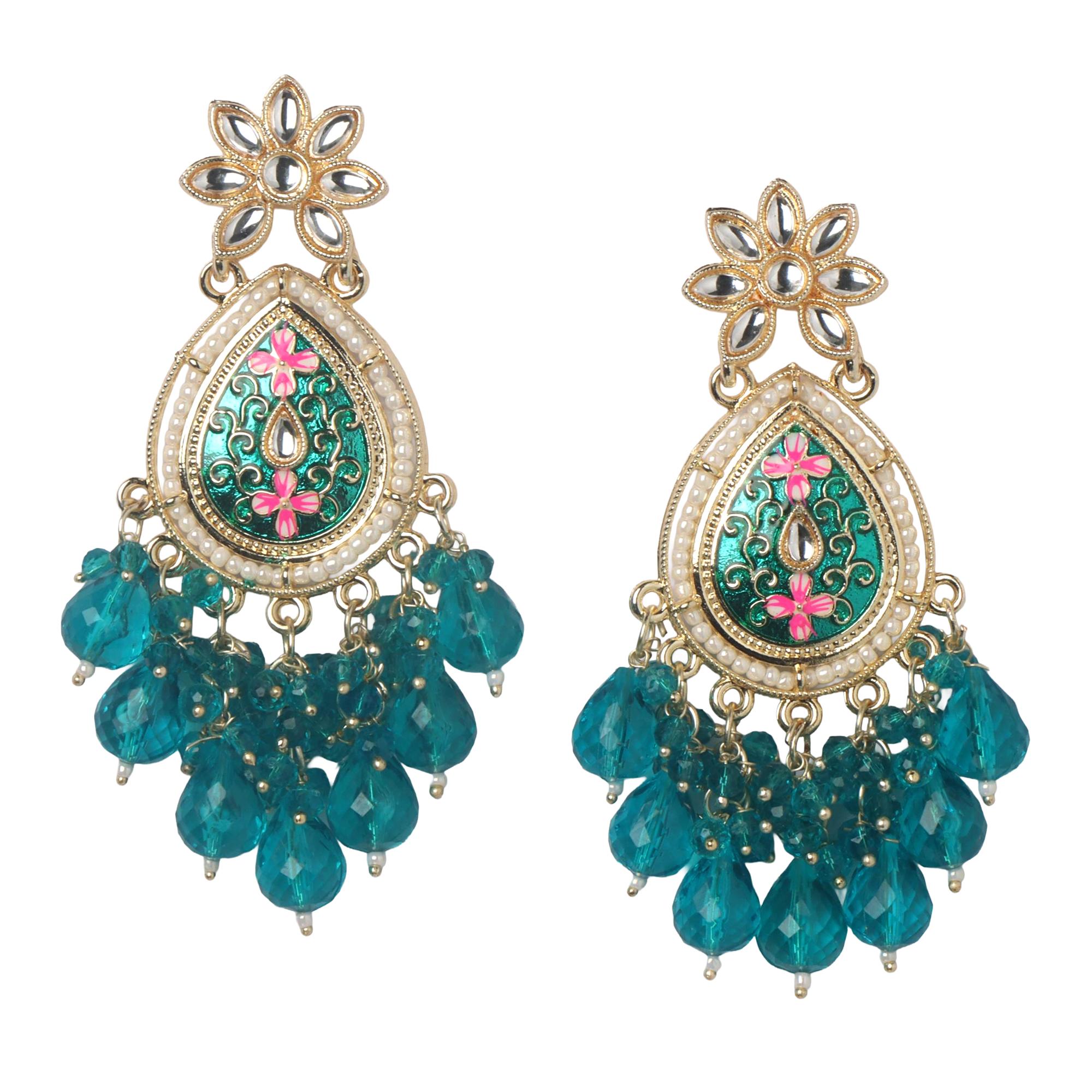 OrnaOra Meenakari Drop Earrings for Women | Ethnic Festive & Party Wear Jewelry - Aqua Blue