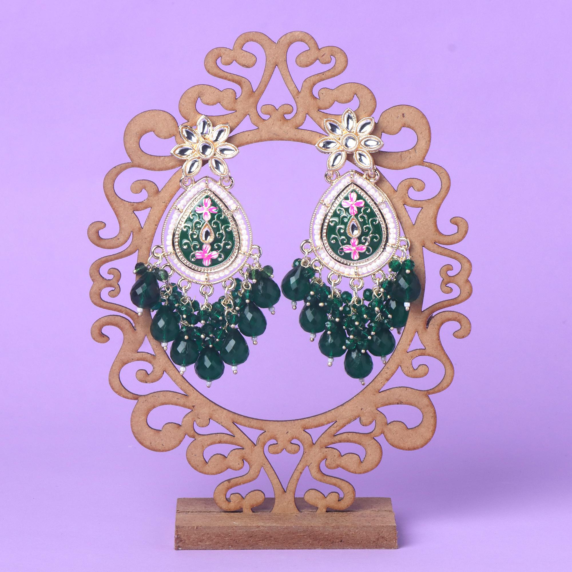 OrnaOra Meenakari Drop Earrings for Women | Ethnic Festive & Party Wear Jewelry - Dark Green