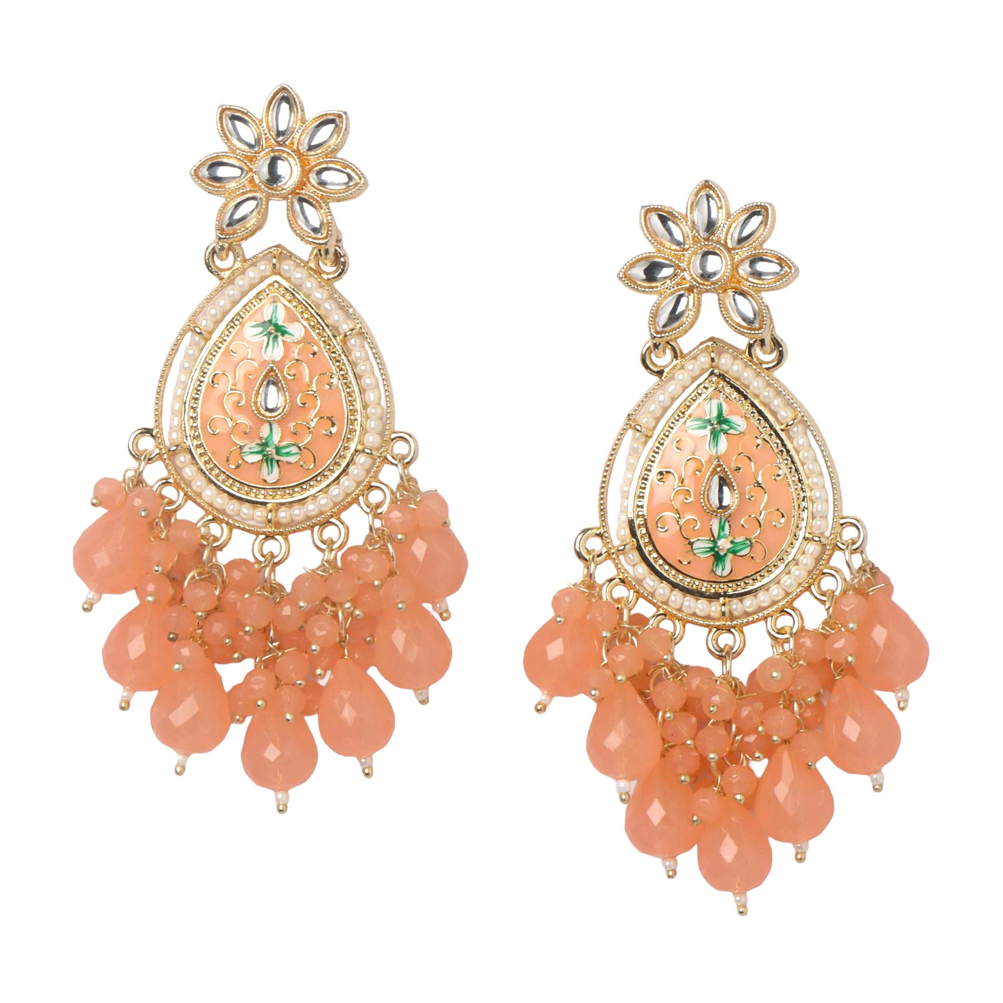 Add festive charm to your style with OrnaOra’s Meenakari Drop Earrings, crafted with fine enamel detailing and vibrant beads. Lightweight, elegant, and perfect for festive, wedding, or party looks — these earrings blend tradition with modern appeal.