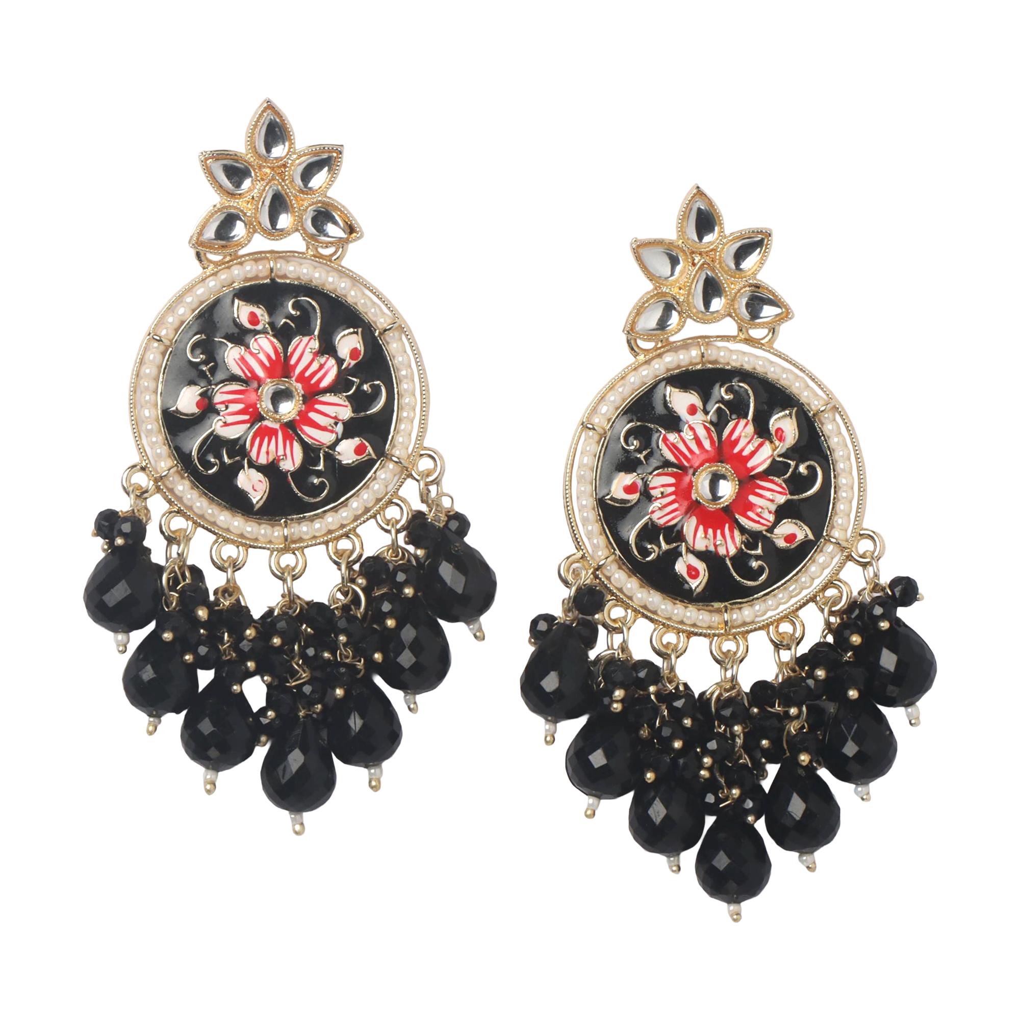 Elevate your ethnic look with these stunning Meenakari Chandbali Earrings, beautifully handcrafted with intricate enamel work and sparkling embellishments. Their vibrant hues and traditional design make them a perfect pick for festive occasions, weddings, and celebrations. Lightweight yet eye-catching, these earrings complement both Indian and Indo-western outfits, adding a royal charm to your style.