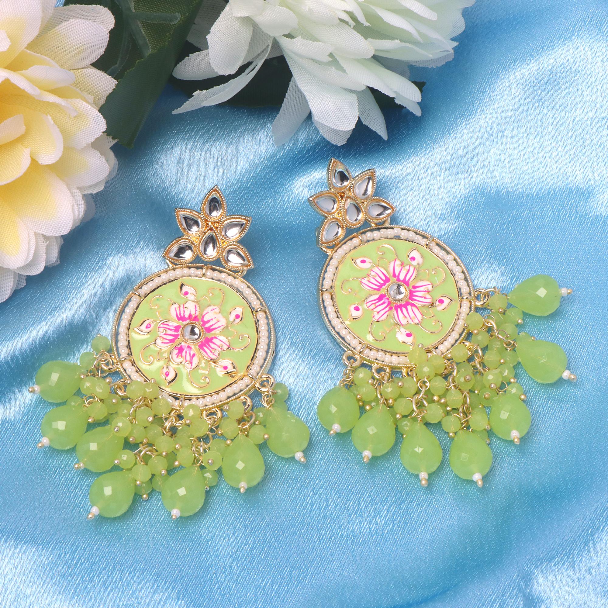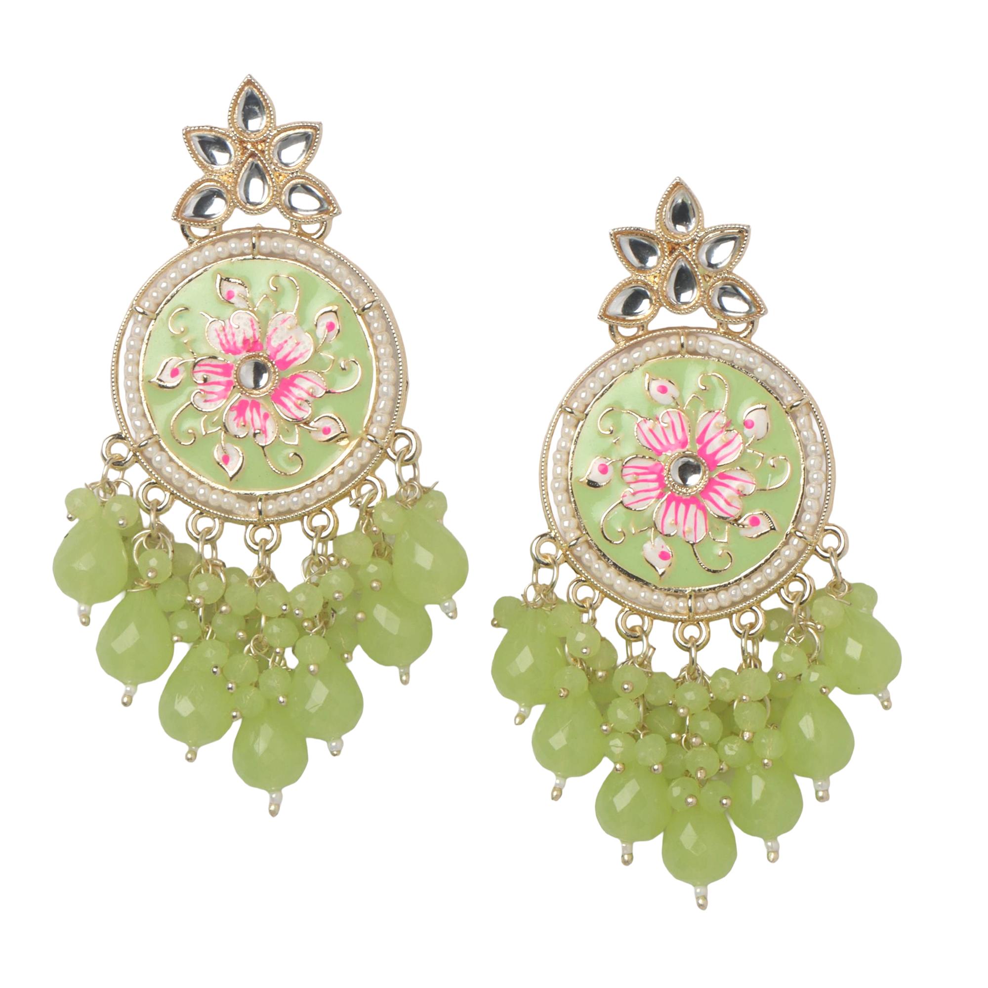 OrnaOra Traditional Meenakari Chandbali Earrings for Women | Ethnic Festive & Wedding Jewelry | Lightweight Party Wear Chandbali Design - Light Green