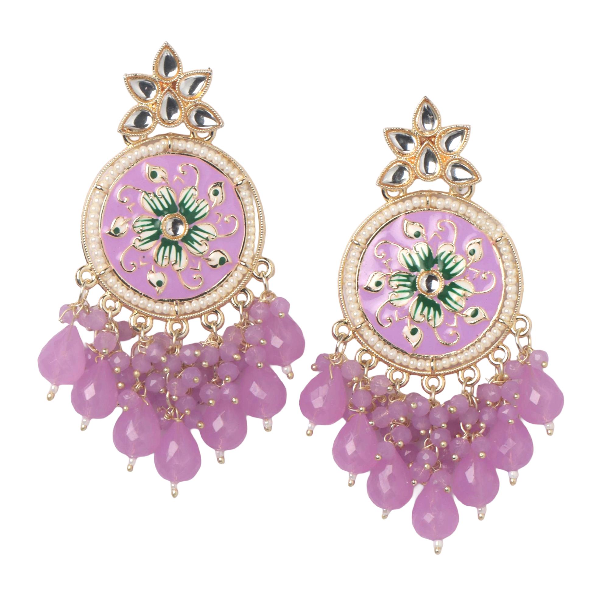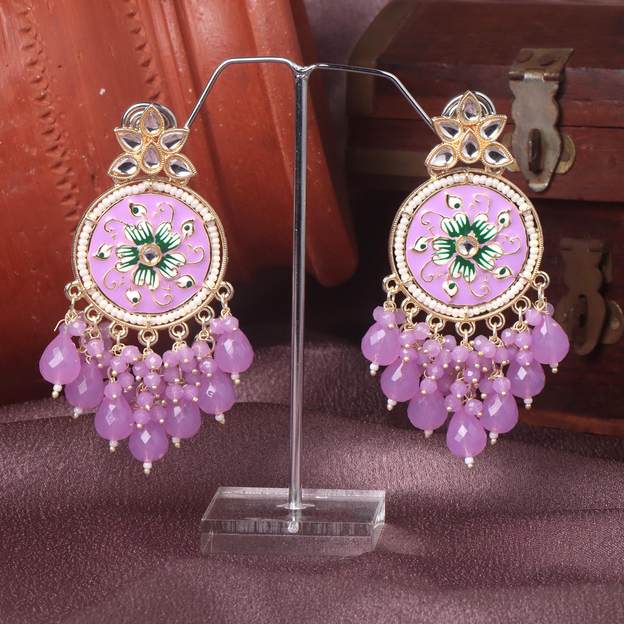 OrnaOra Traditional Meenakari Chandbali Earrings for Women | Ethnic Festive & Wedding Jewelry | Lightweight Party Wear Chandbali Design - Purple