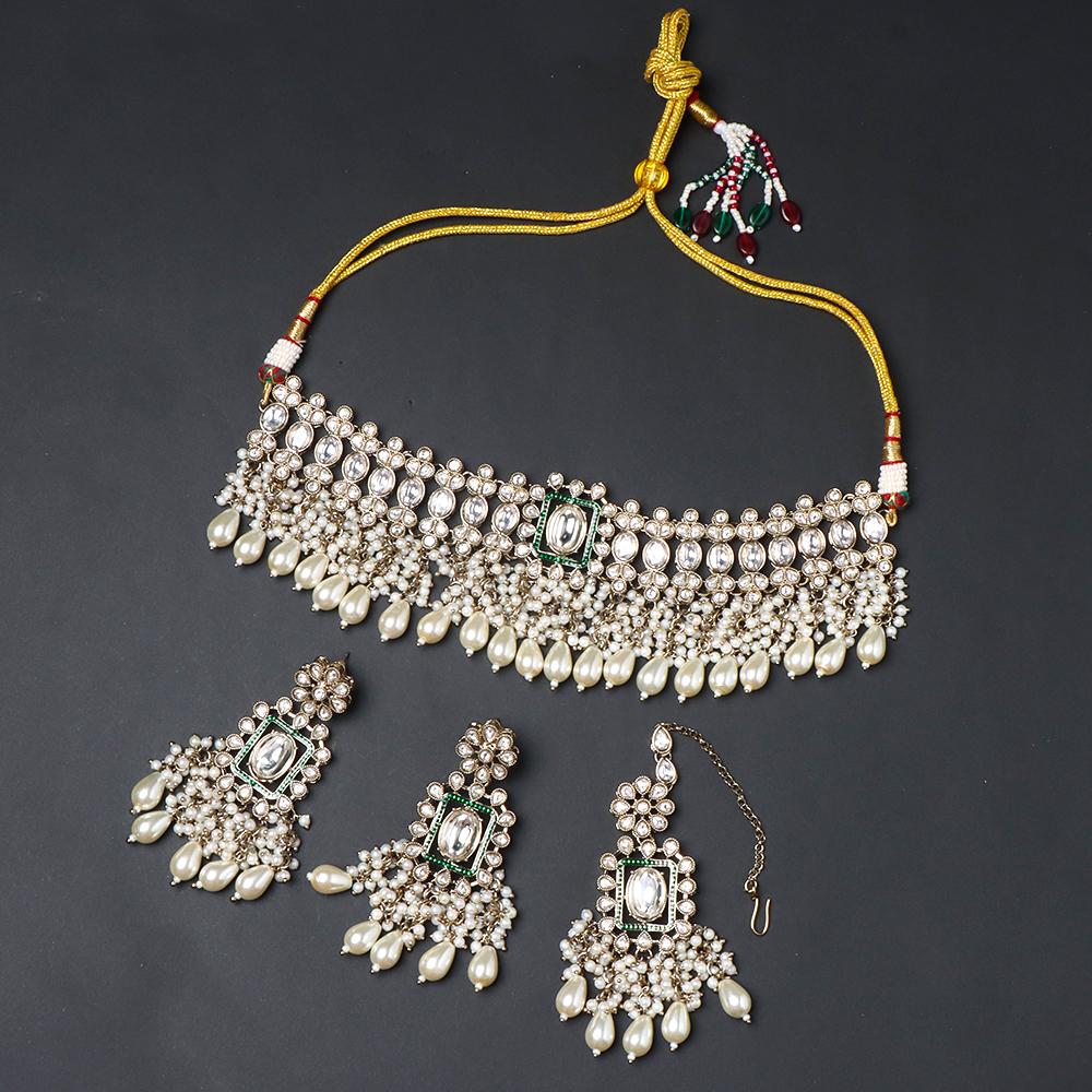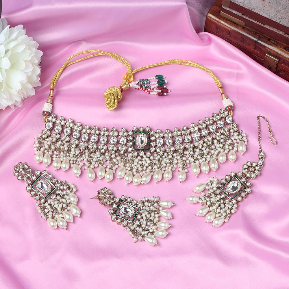 OrnaOra suggests pairing this imitation jewelry set with traditional attire like a red saree or lehenga for a timeless festive look.