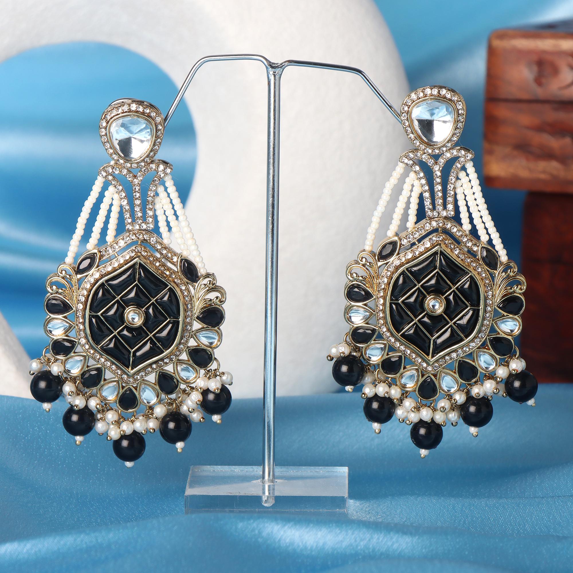 OrnaOra suggests pairing these gorgeous imitation black danglers with black, gold, or contrasting coloured ethnic wear for weddings or formal events. Make a statement.