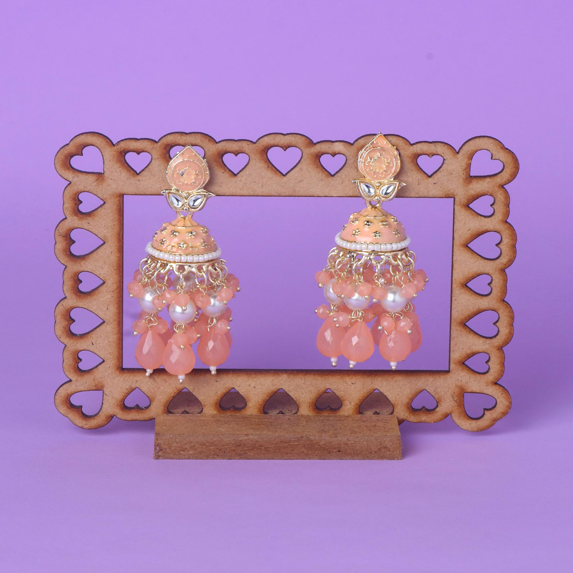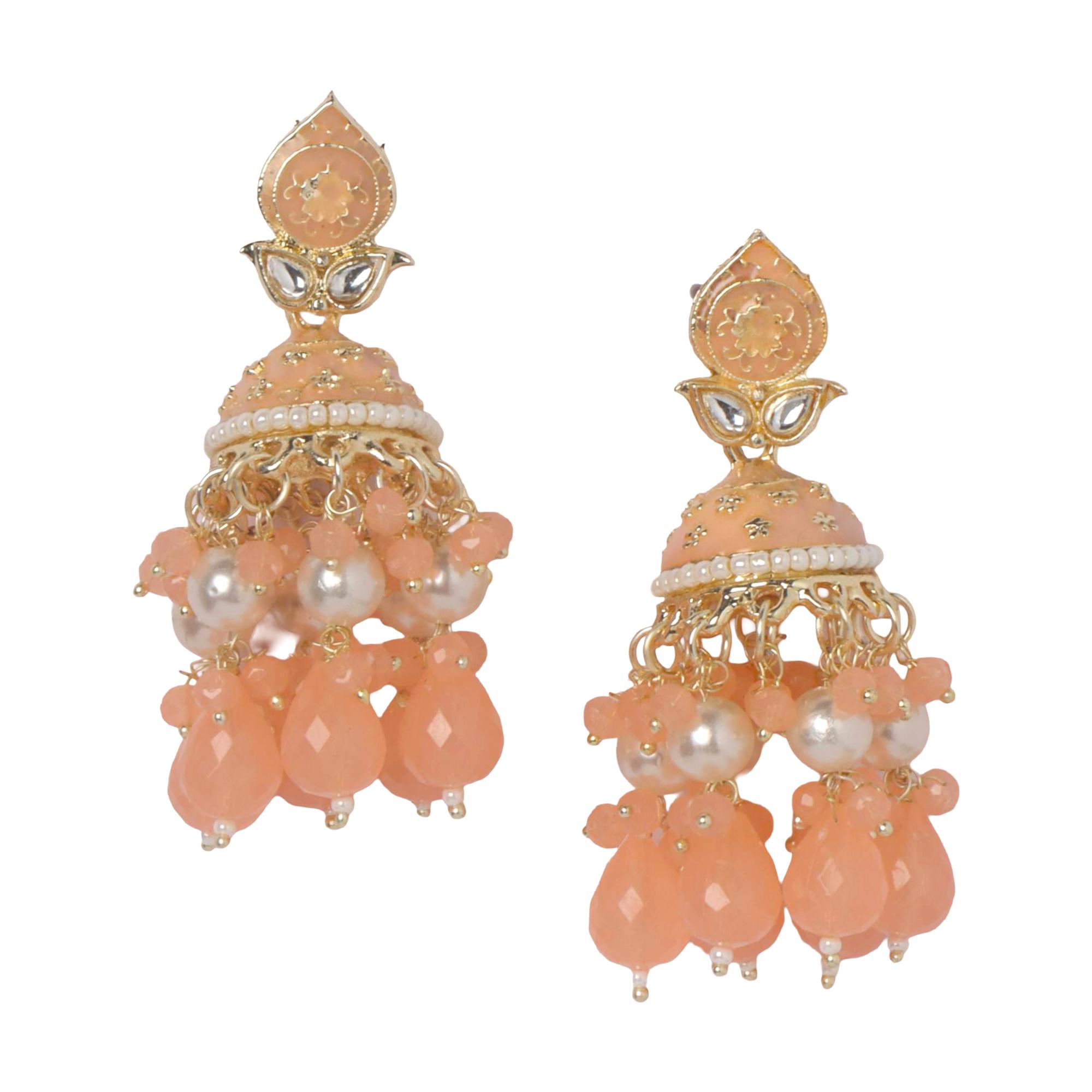 Elegant Kundan Pearl Jhumka Earrings for Women | OrnaOra Ethnic Jewelry - Peach