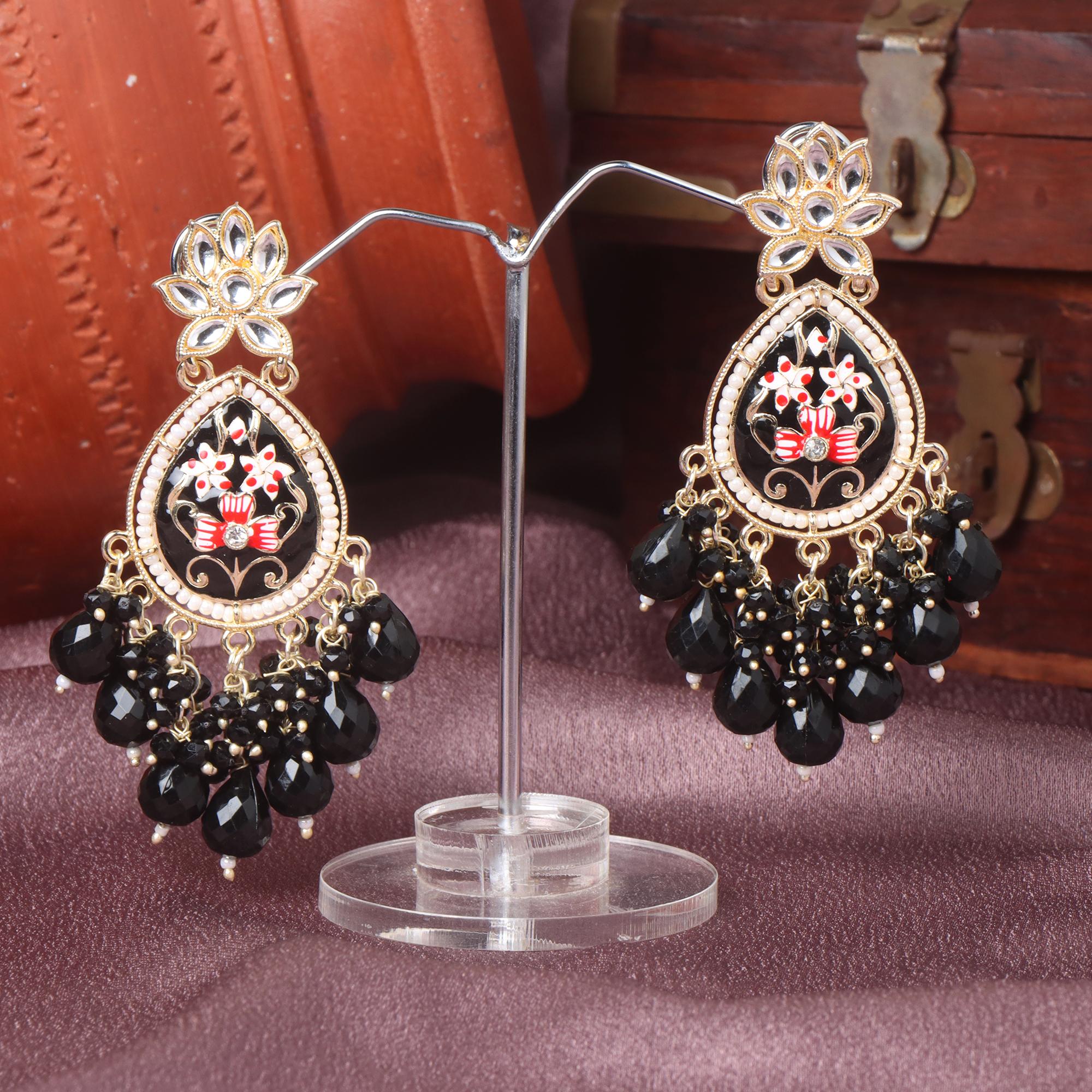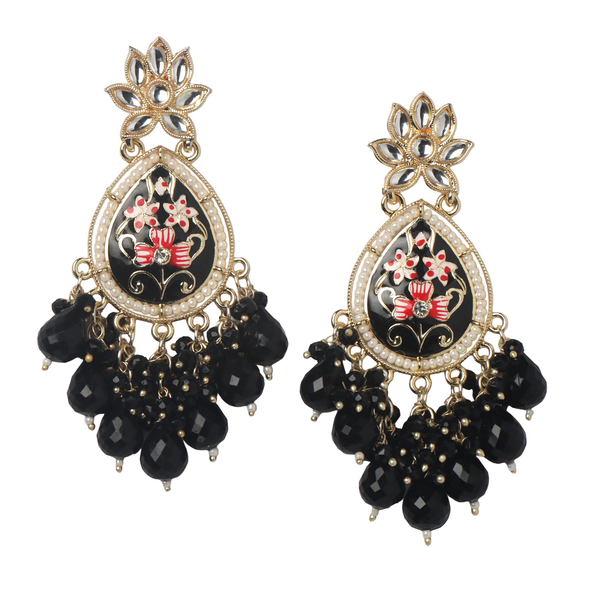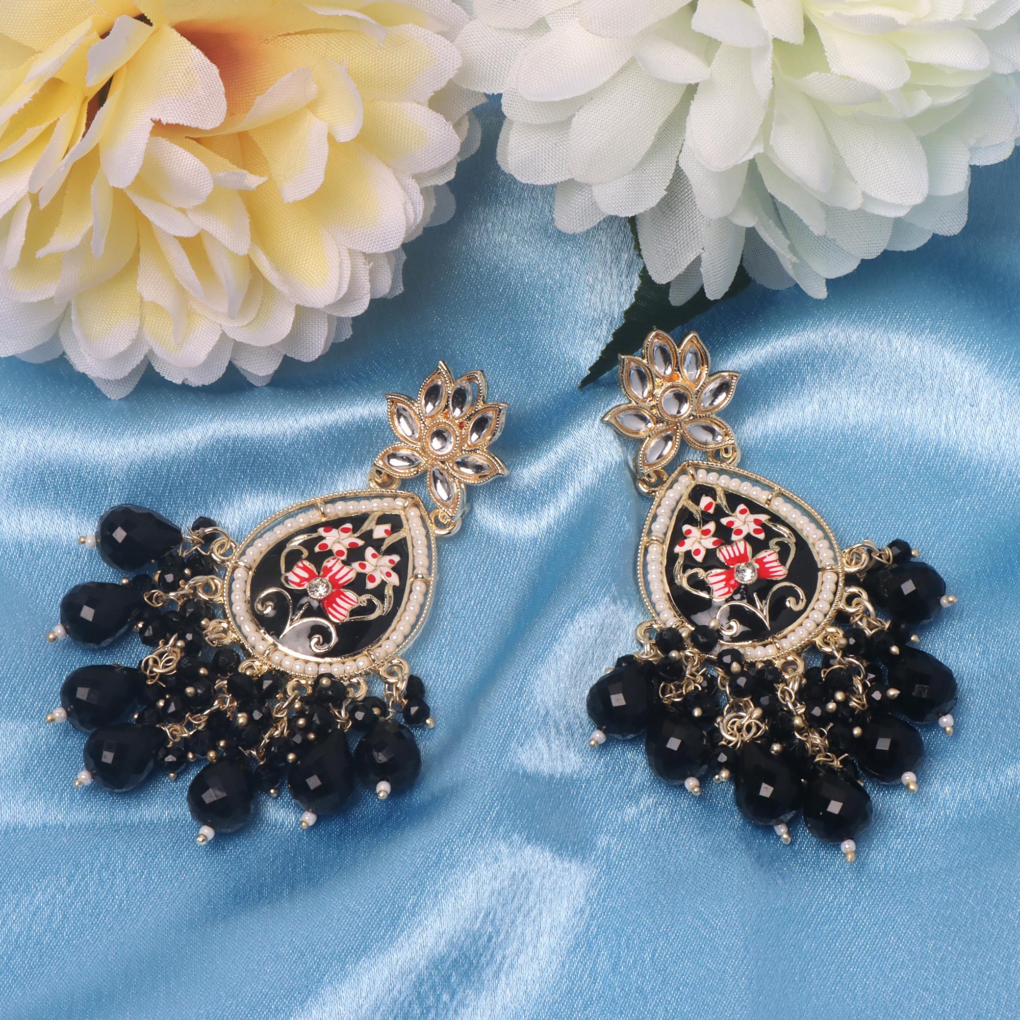 Floral Meenakari Kundan Jhumka Earrings for Women | OrnaOra Designer Collection - Black