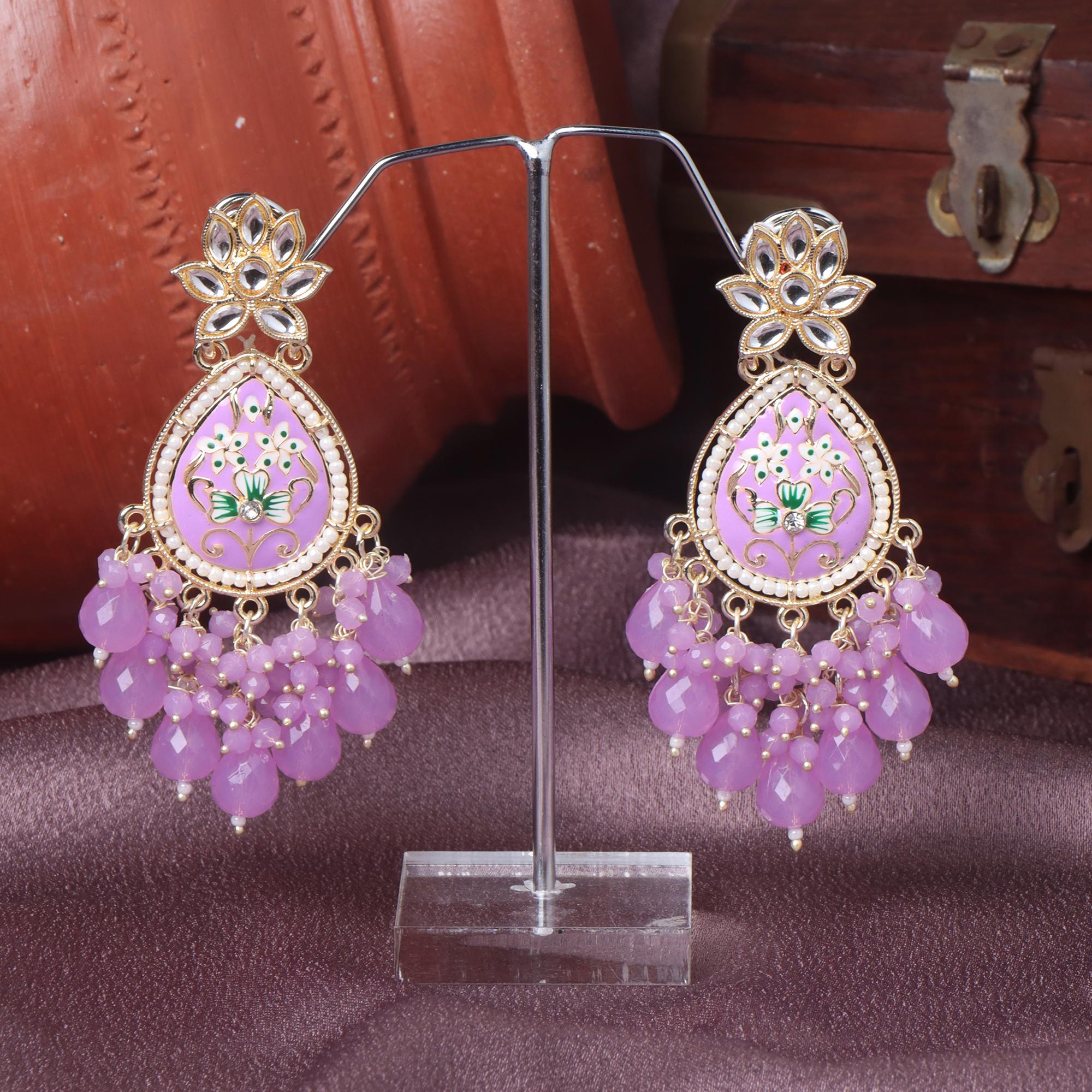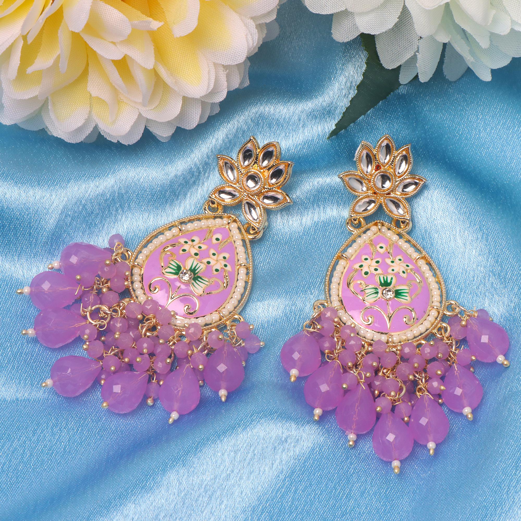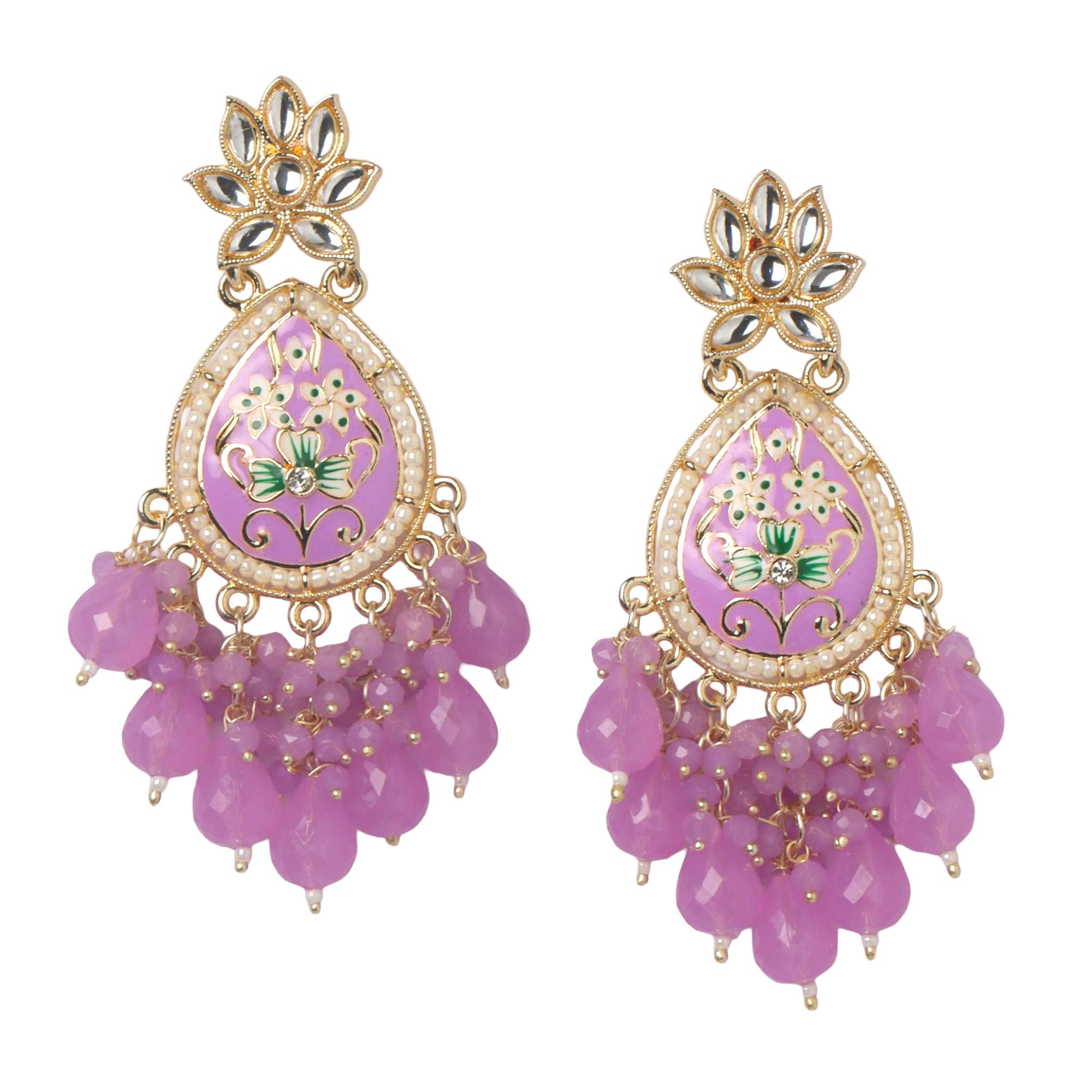 Floral Meenakari Kundan Jhumka Earrings for Women | OrnaOra Designer Collection - Purple