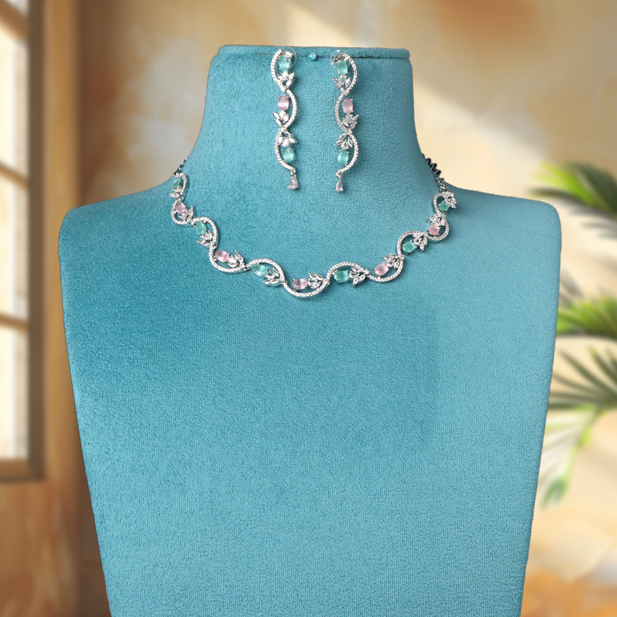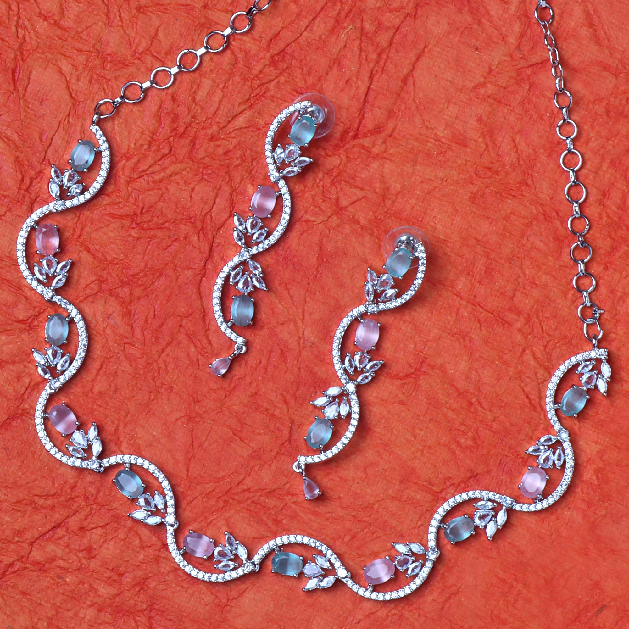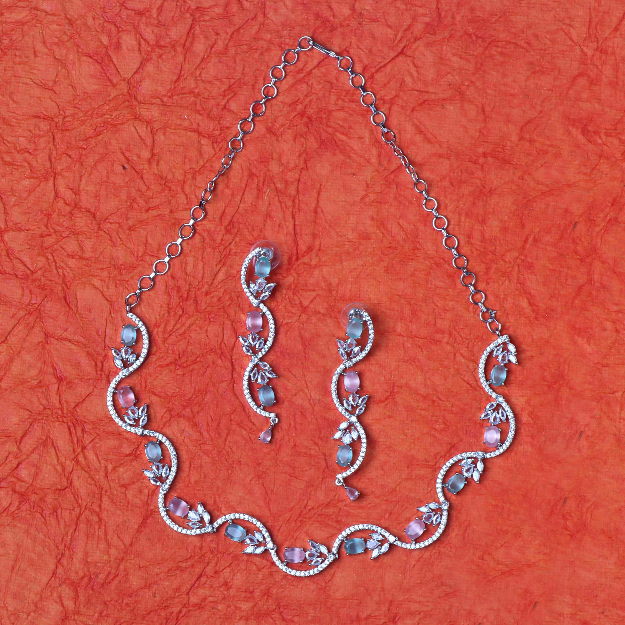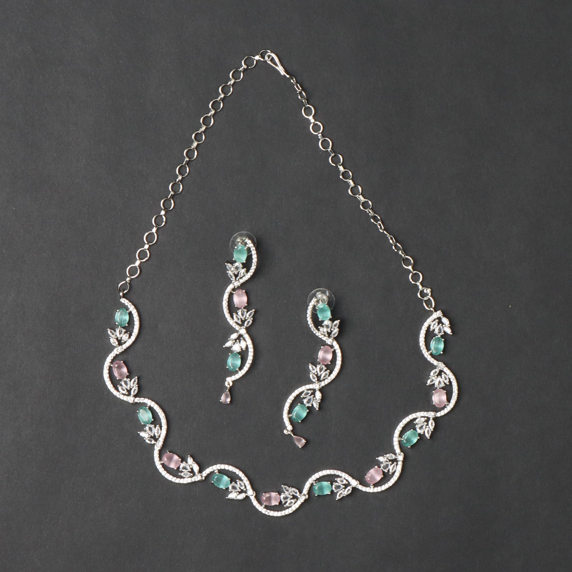 OrnaOra Elegant Floral American Diamond Jewelry Set