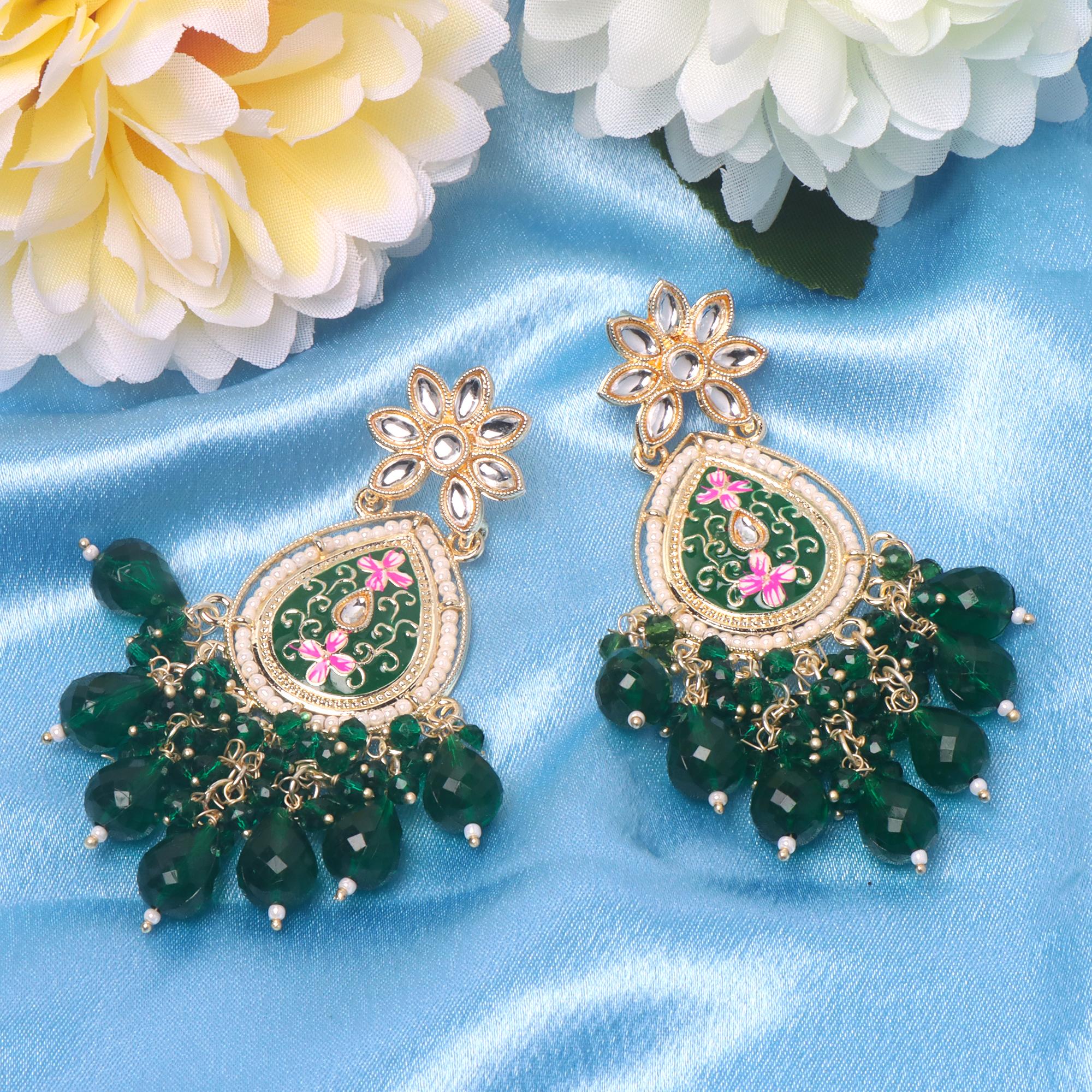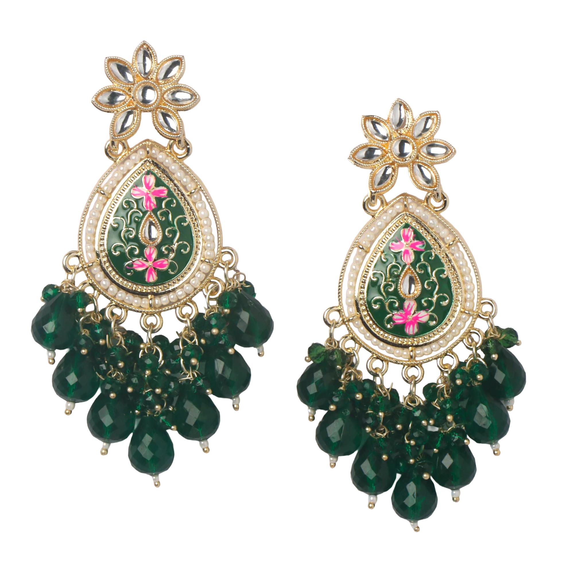 OrnaOra Meenakari Drop Earrings for Women | Ethnic Festive & Party Wear Jewelry - Dark Green