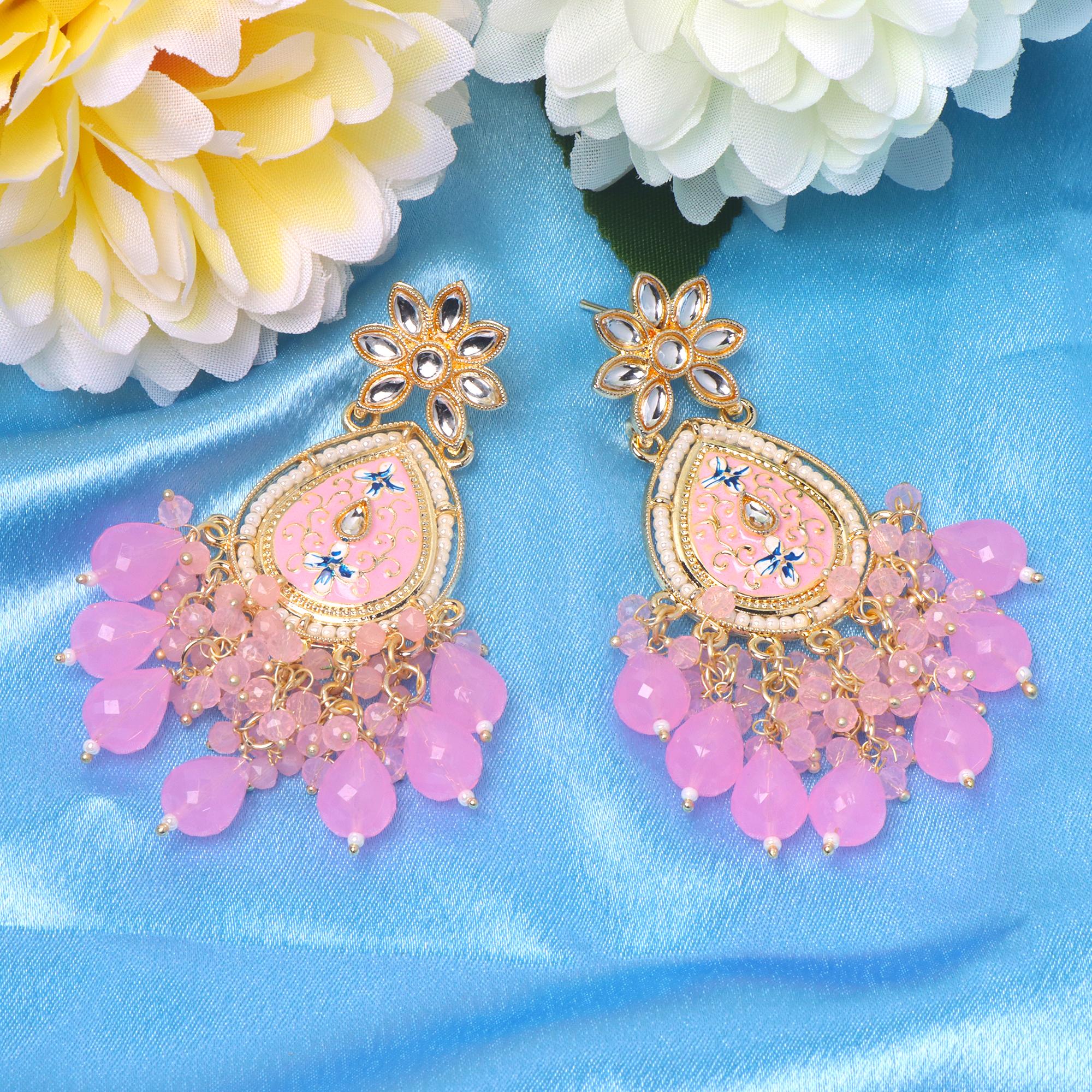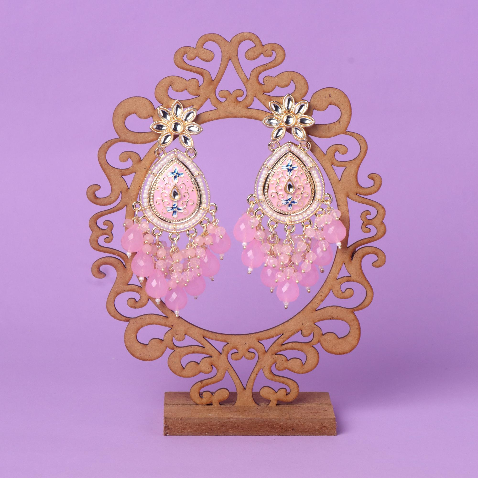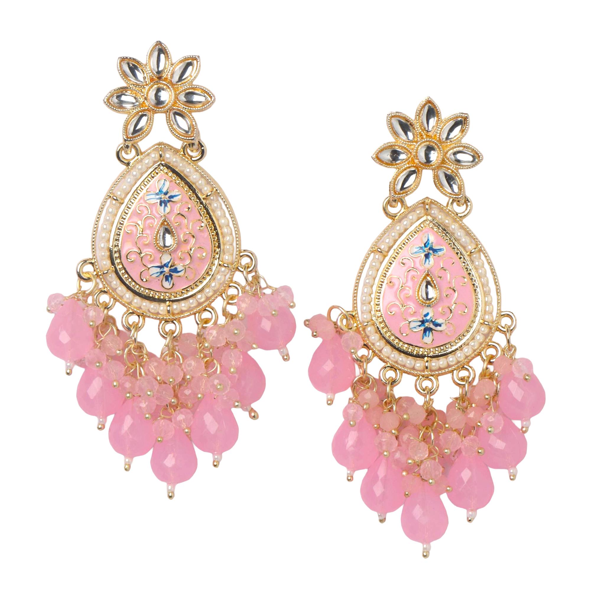OrnaOra Meenakari Drop Earrings for Women | Ethnic Festive & Party Wear Jewelry - Light Pink