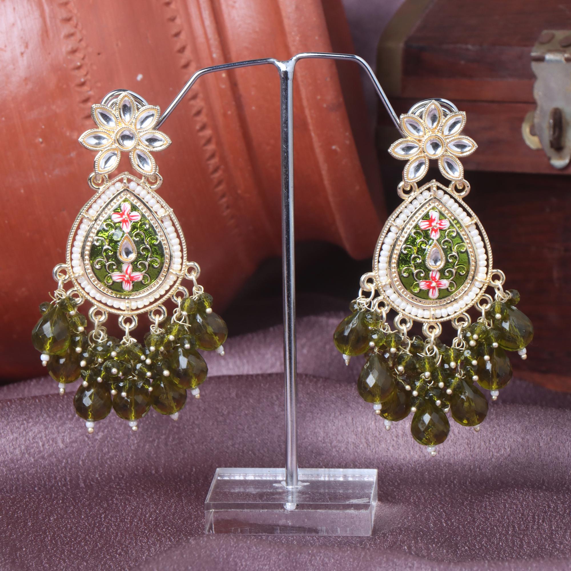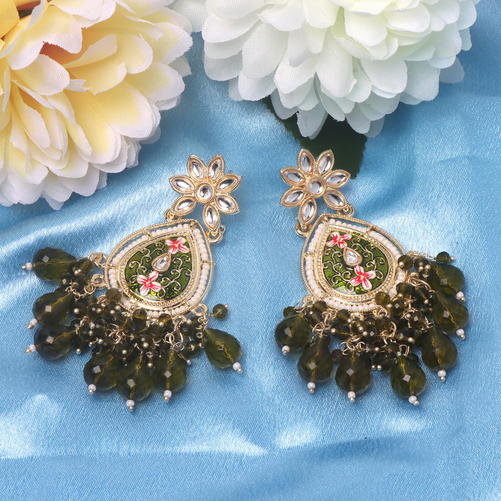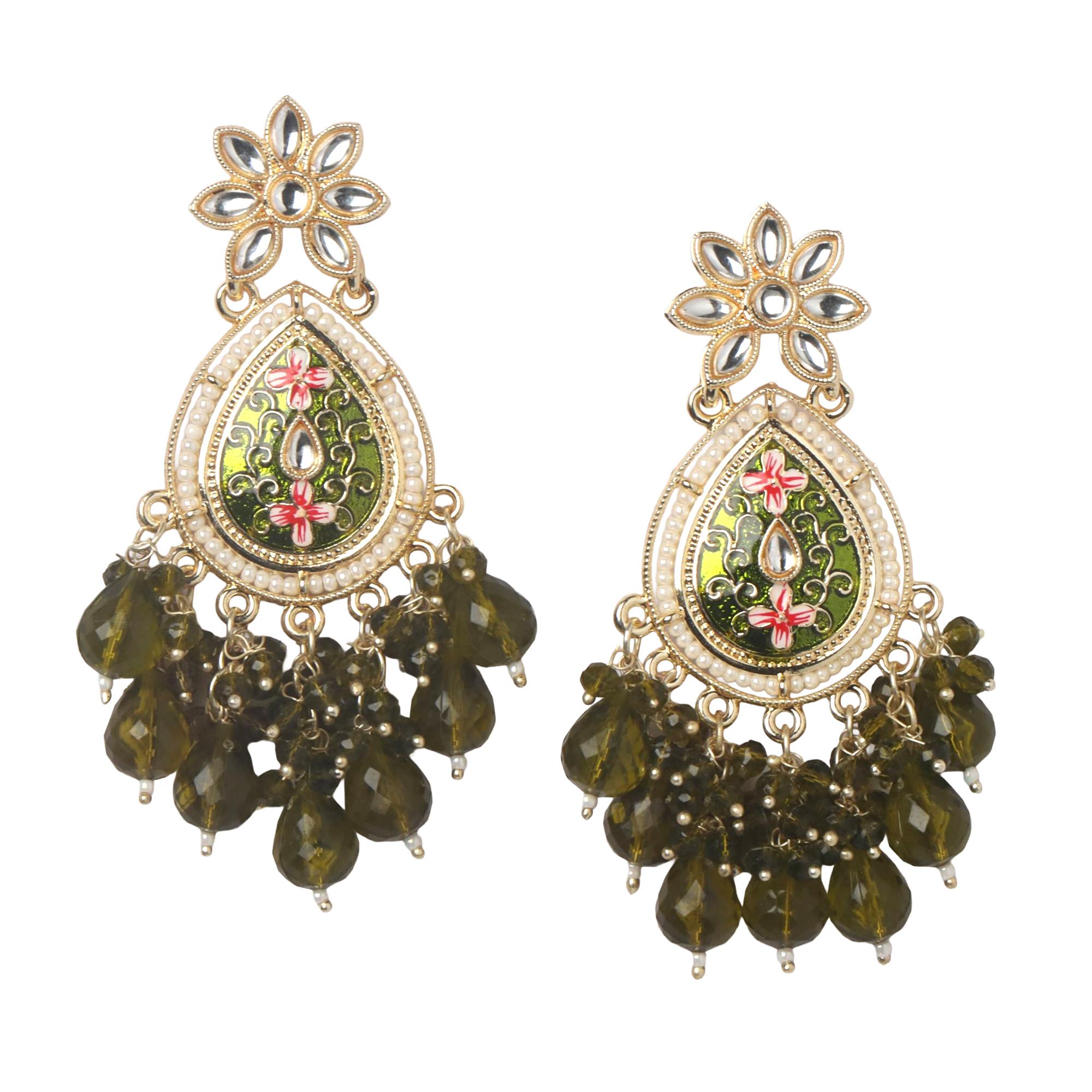 OrnaOra Meenakari Drop Earrings for Women | Ethnic Festive & Party Wear Jewelry - Olive Green