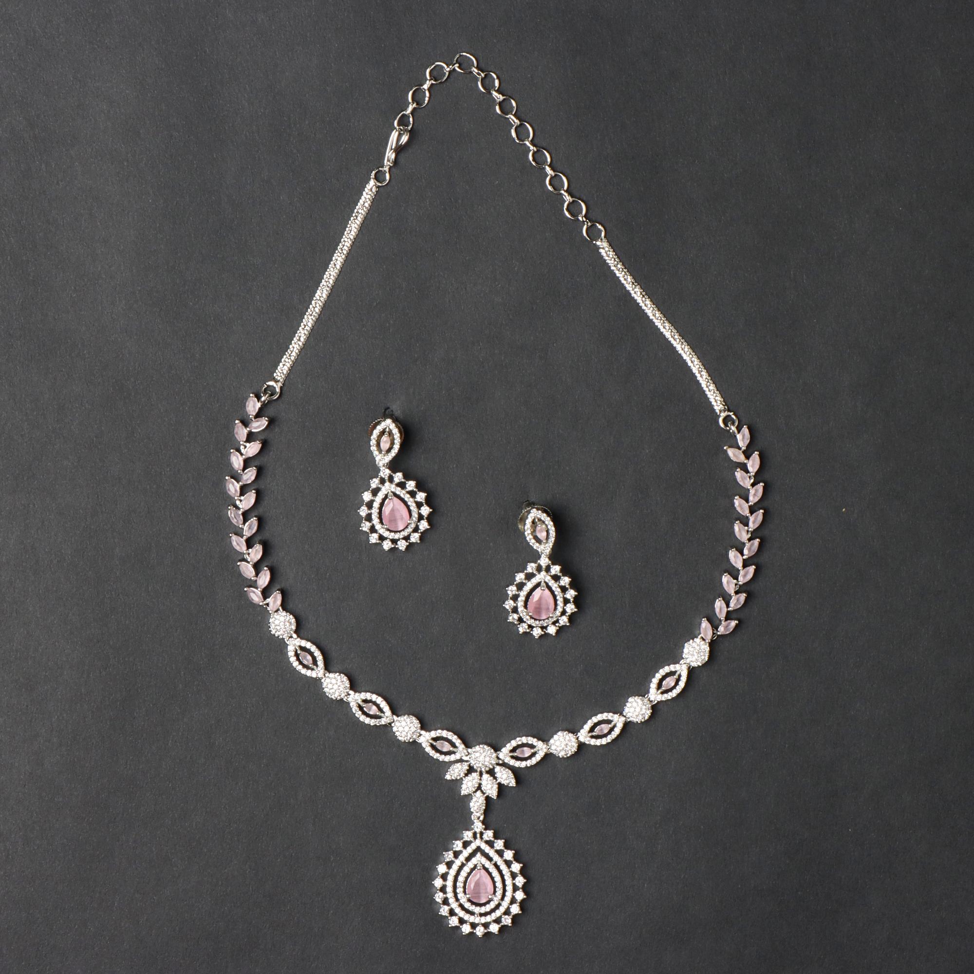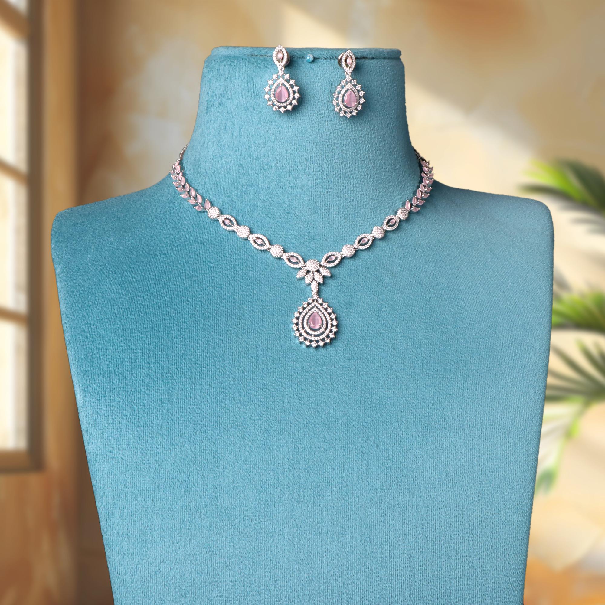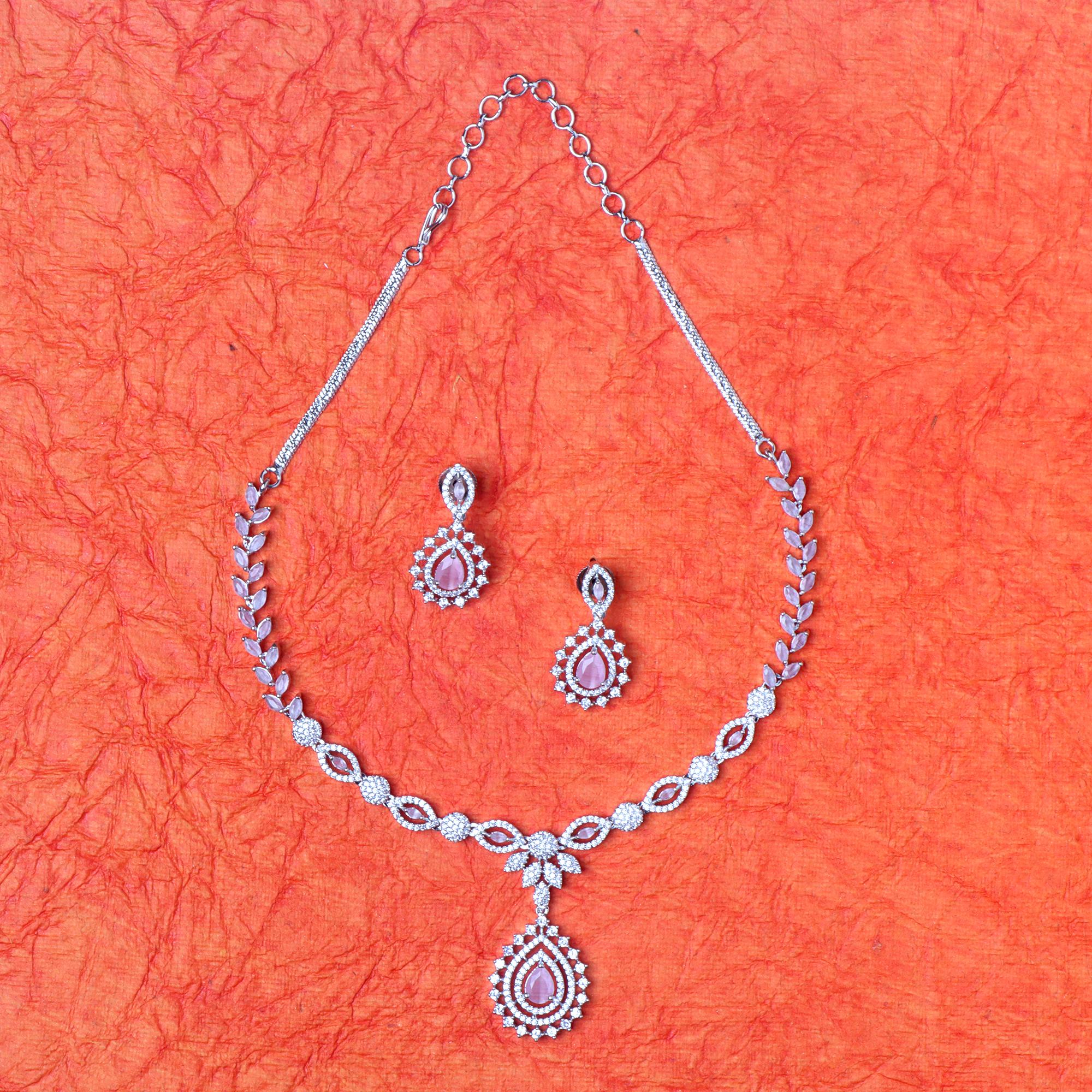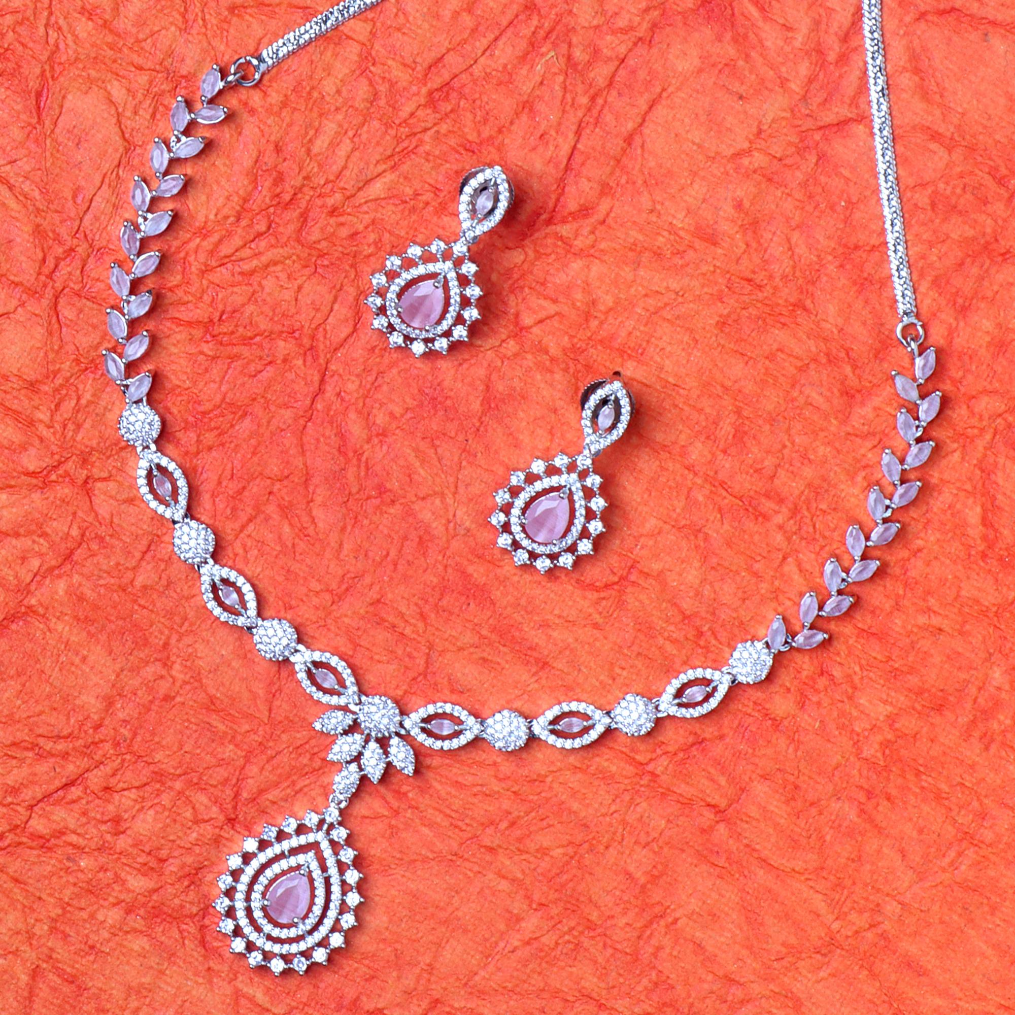 OrnaOra's elegant silver tone necklace and earring set showcases sparkling American diamonds with delicate pink faux stones. This beautiful imitation jewelry offers a sophisticated and graceful touch for any celebration.