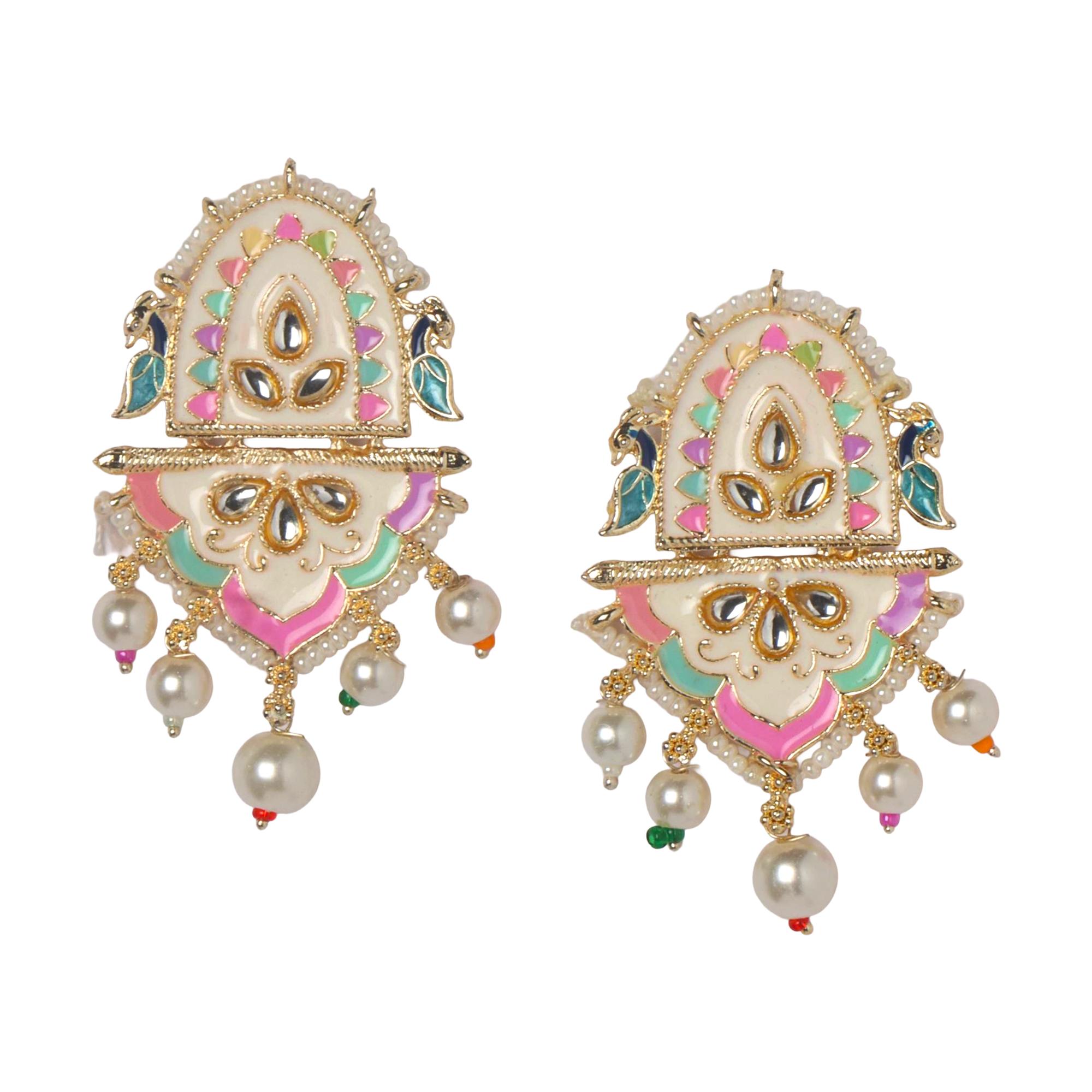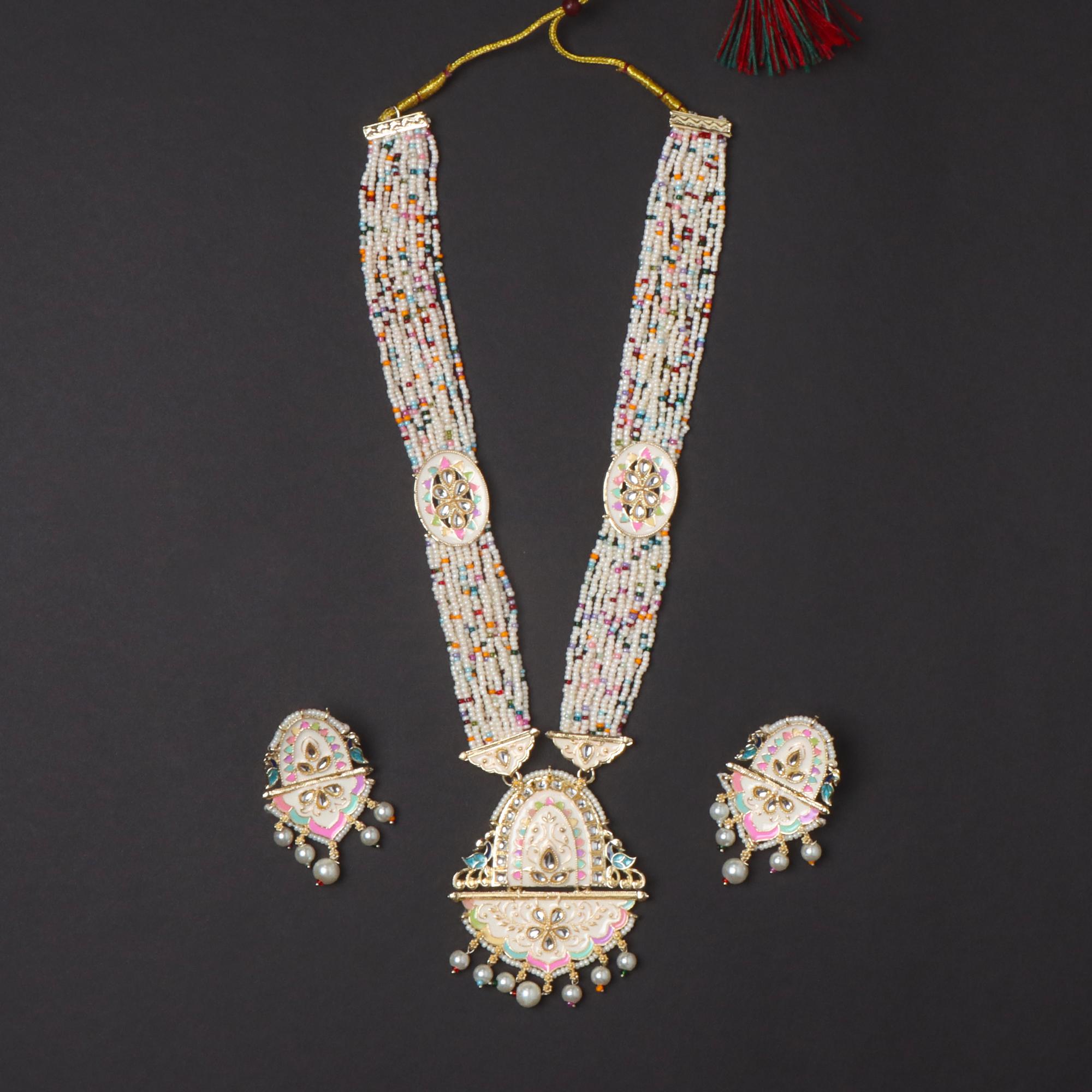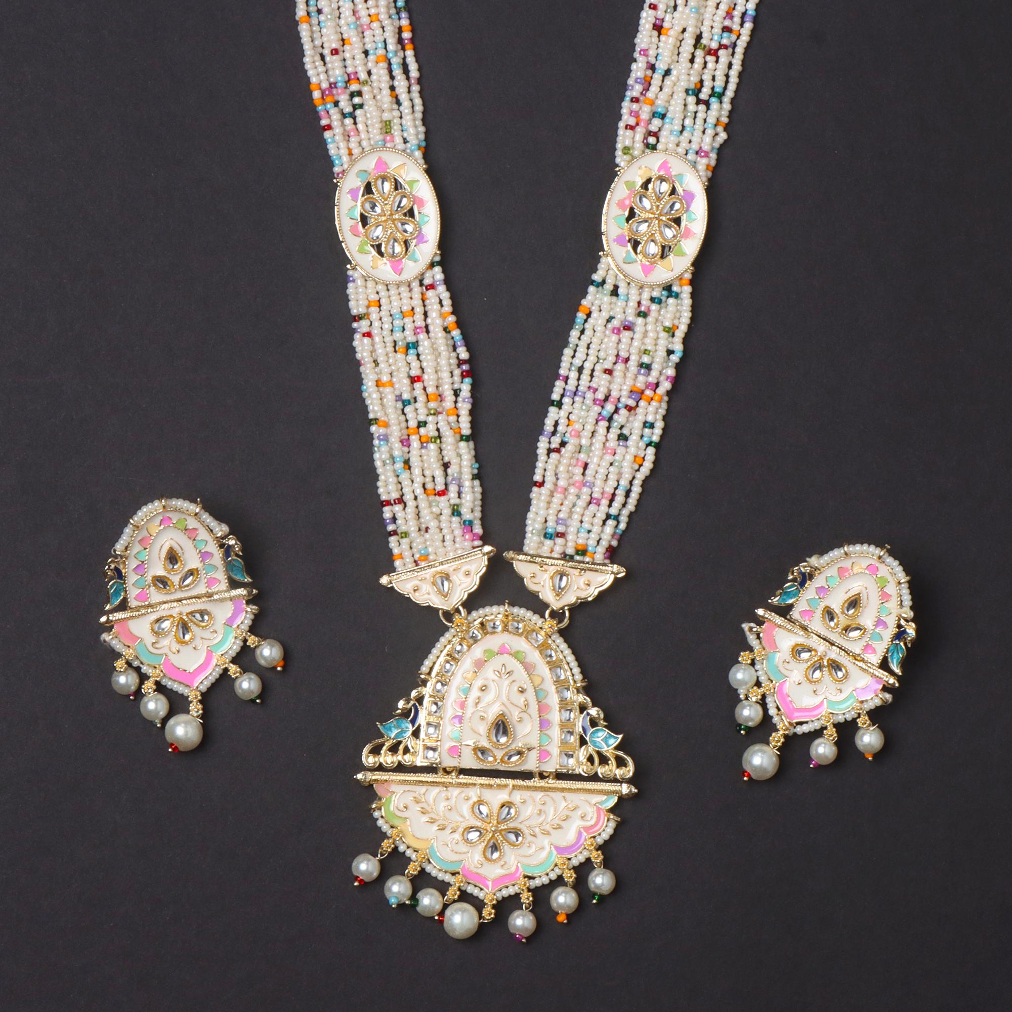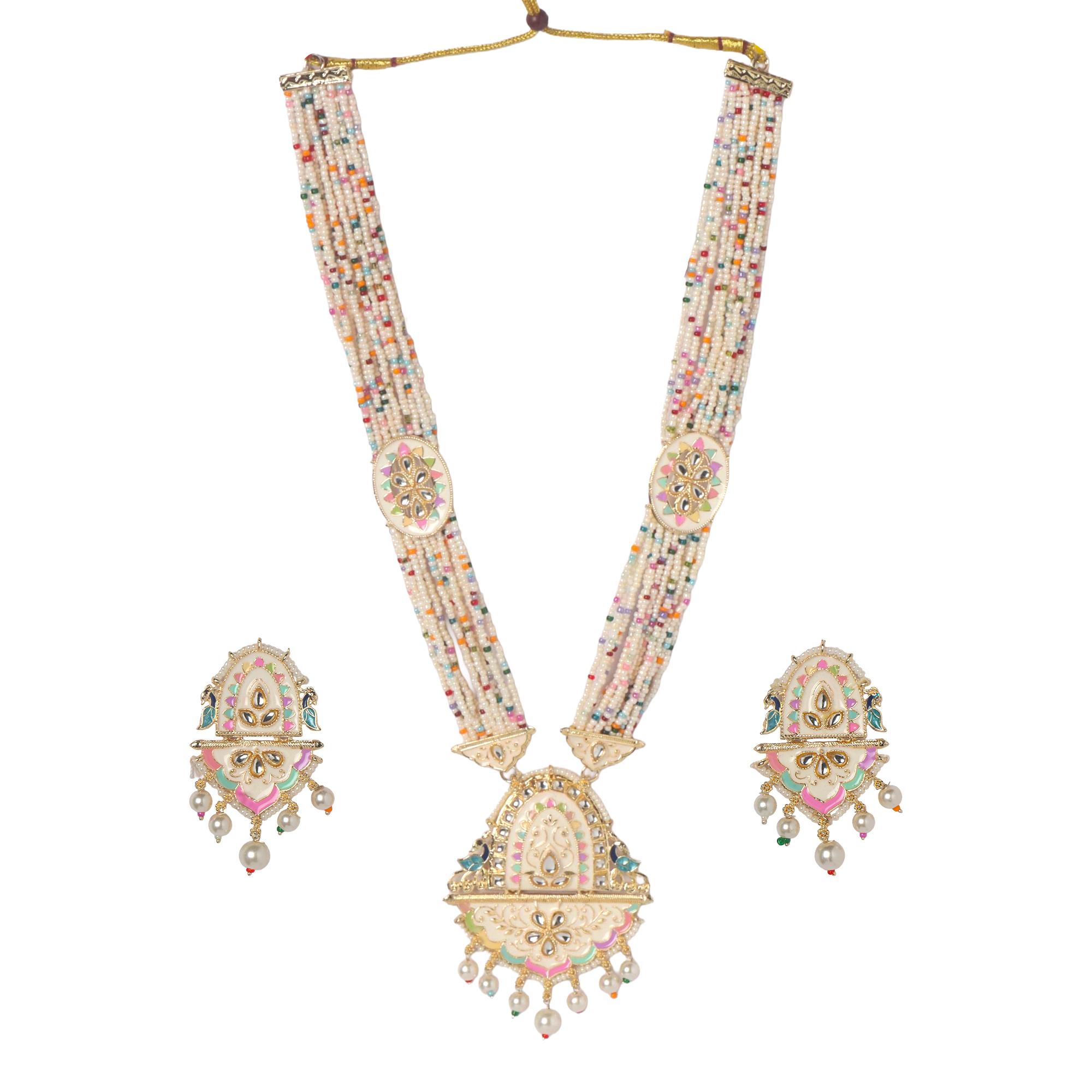 OrnaOra Traditional Kundan Pearl Jewelry Necklace Set with Designer Pendant & Earrings – Multicolor