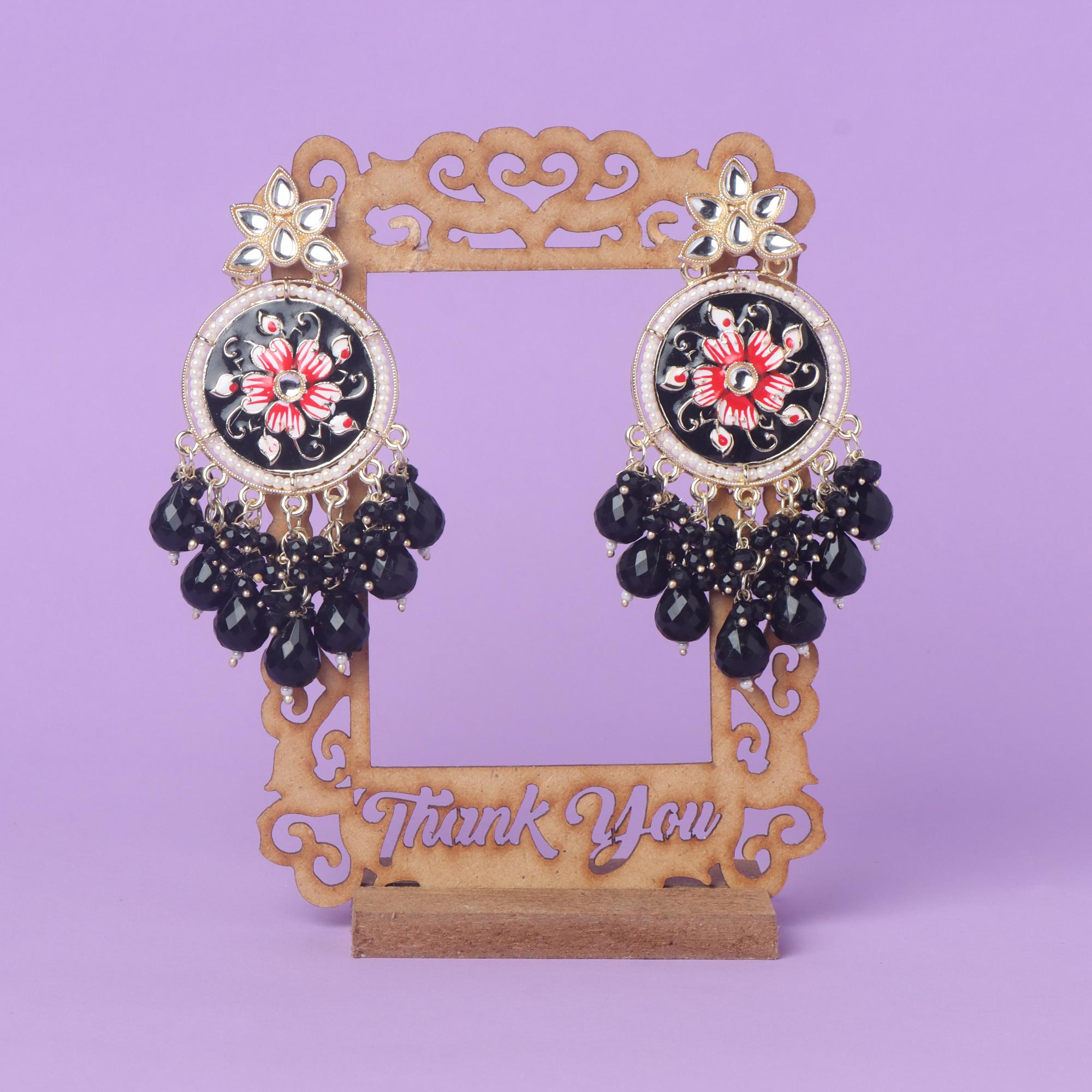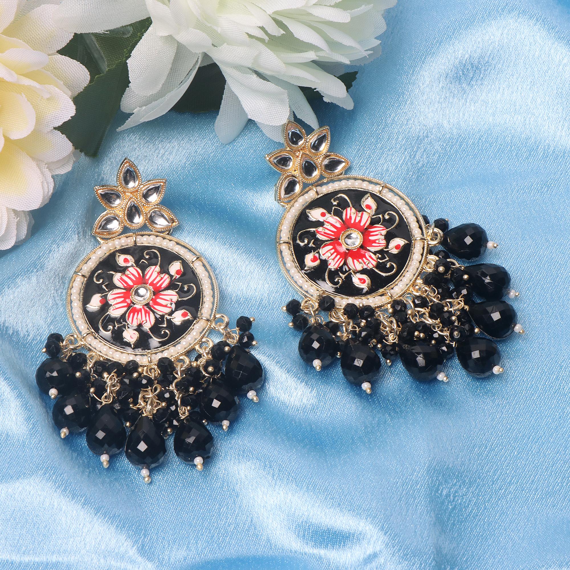 Elevate your ethnic look with these stunning Meenakari Chandbali Earrings, beautifully handcrafted with intricate enamel work and sparkling embellishments. Their vibrant hues and traditional design make them a perfect pick for festive occasions, weddings, and celebrations. Lightweight yet eye-catching, these earrings complement both Indian and Indo-western outfits, adding a royal charm to your style.