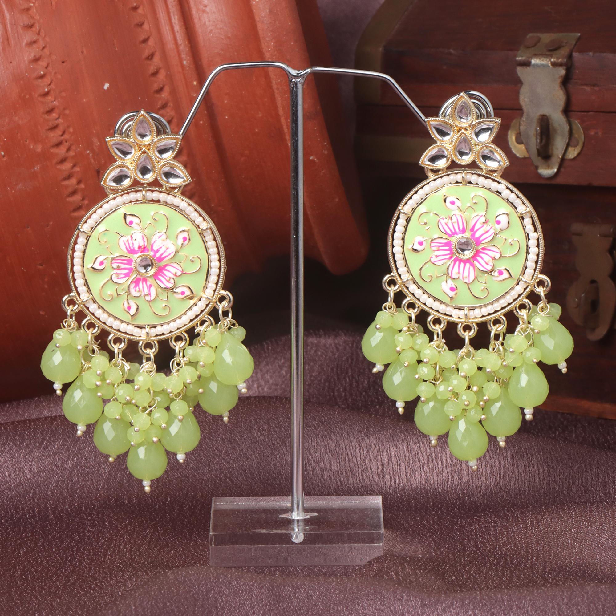 OrnaOra Traditional Meenakari Chandbali Earrings for Women | Ethnic Festive & Wedding Jewelry | Lightweight Party Wear Chandbali Design - Light Green