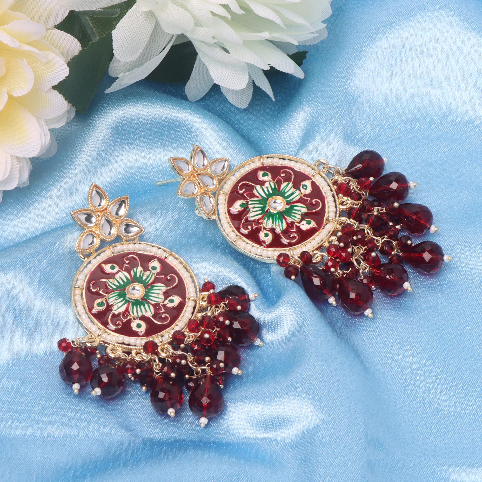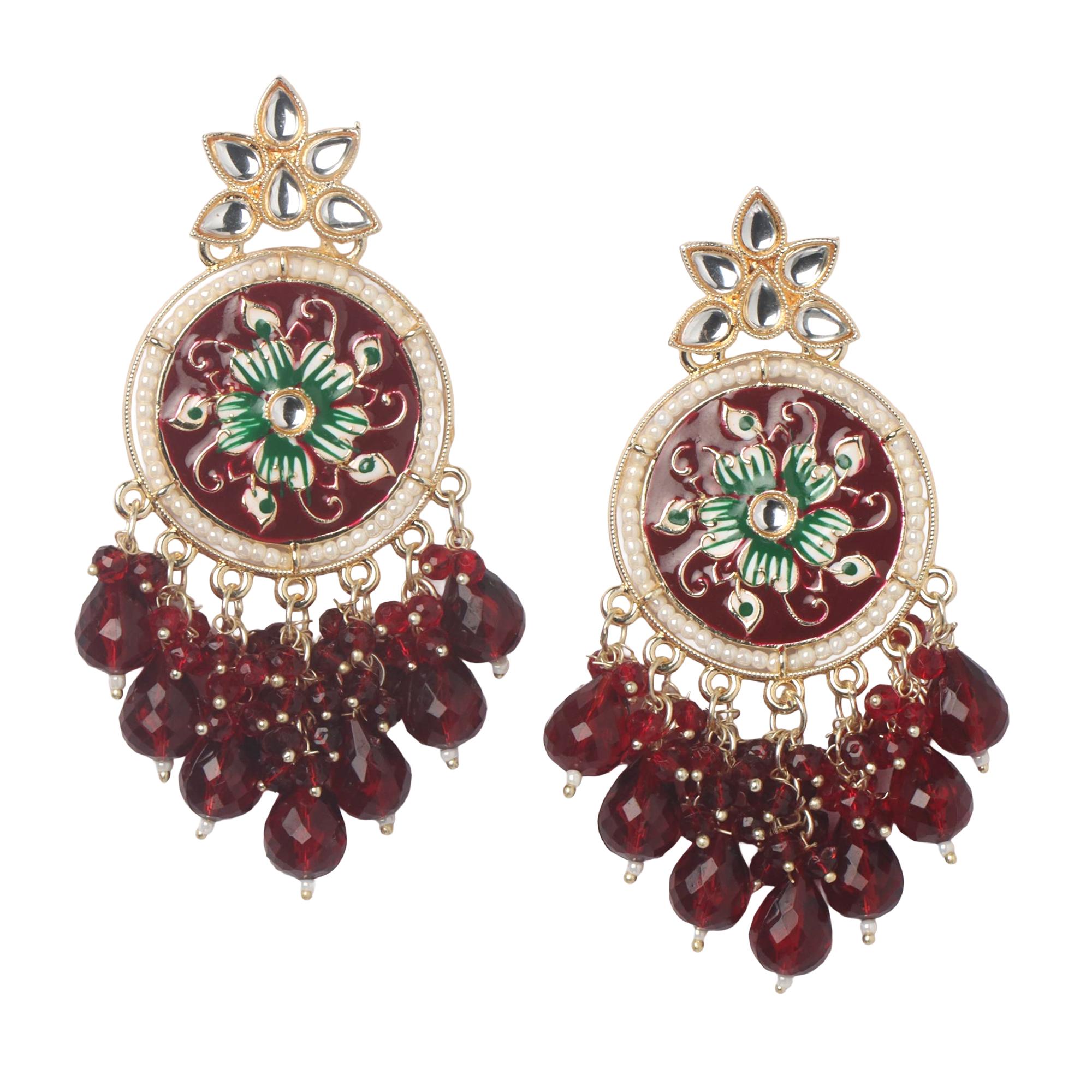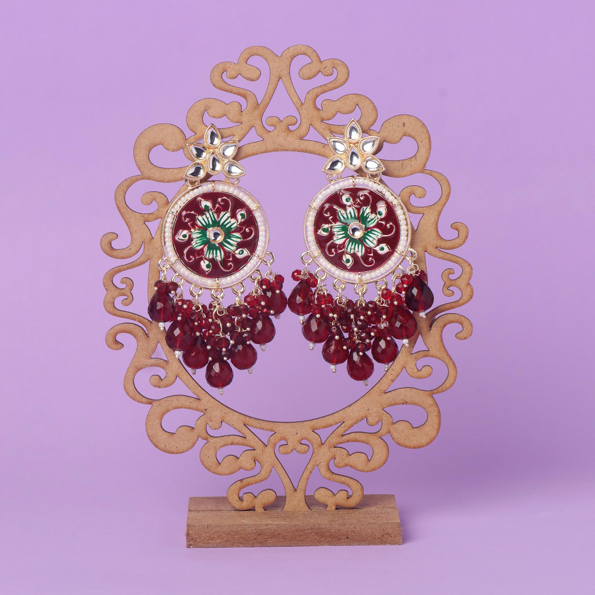 Elevate your ethnic look with these stunning Meenakari Chandbali Earrings, beautifully handcrafted with intricate enamel work and sparkling embellishments. Their vibrant hues and traditional design make them a perfect pick for festive occasions, weddings, and celebrations. Lightweight yet eye-catching, these earrings complement both Indian and Indo-western outfits, adding a royal charm to your style.