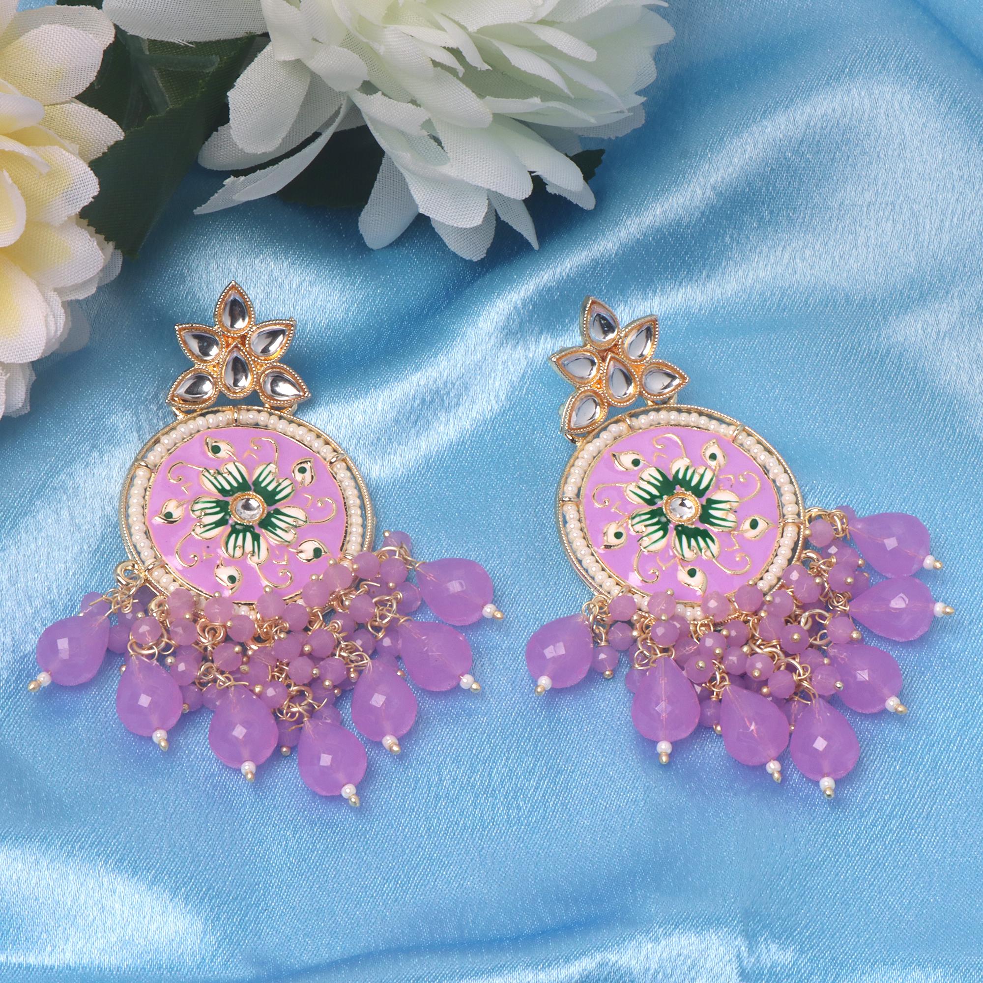 OrnaOra Traditional Meenakari Chandbali Earrings for Women | Ethnic Festive & Wedding Jewelry | Lightweight Party Wear Chandbali Design - Purple
