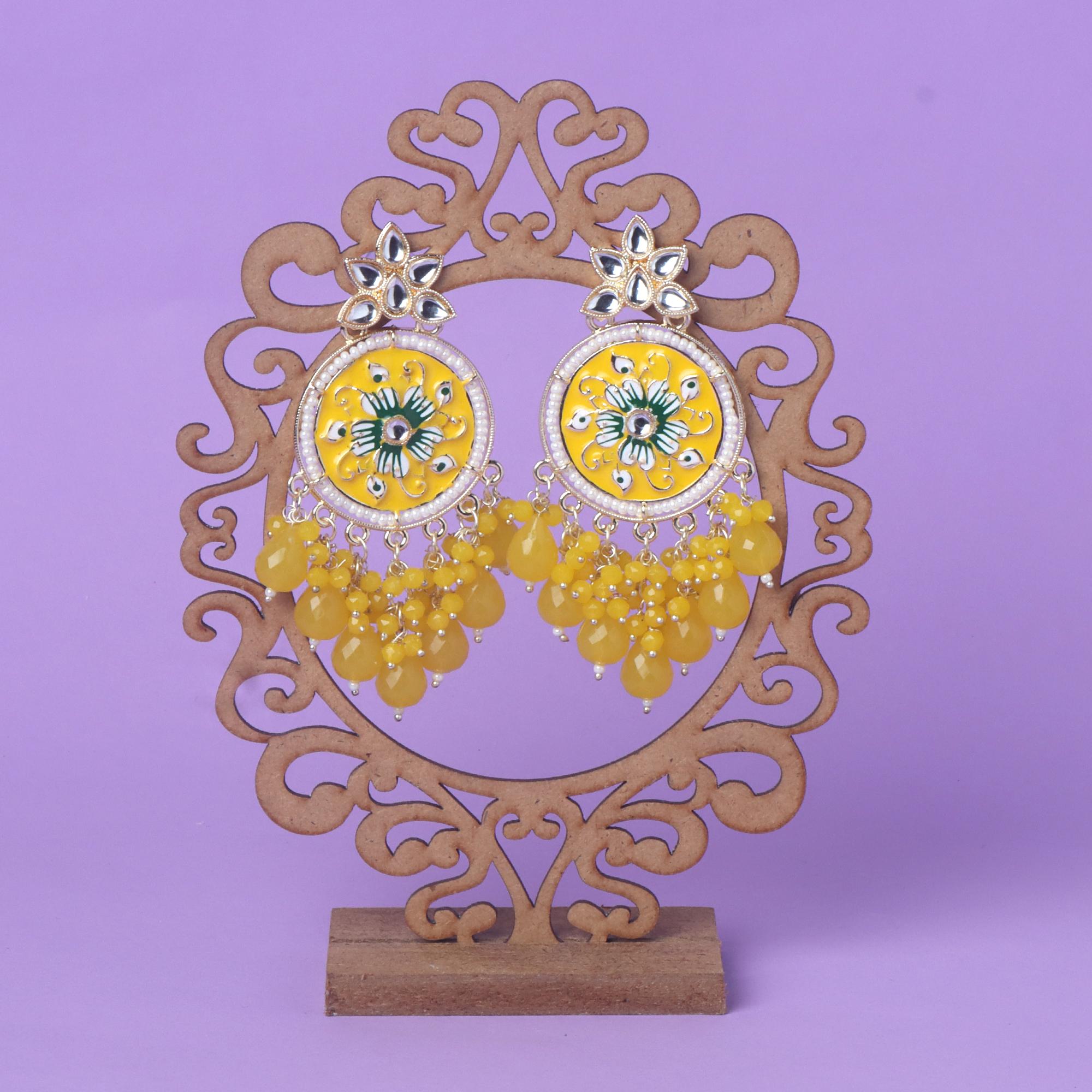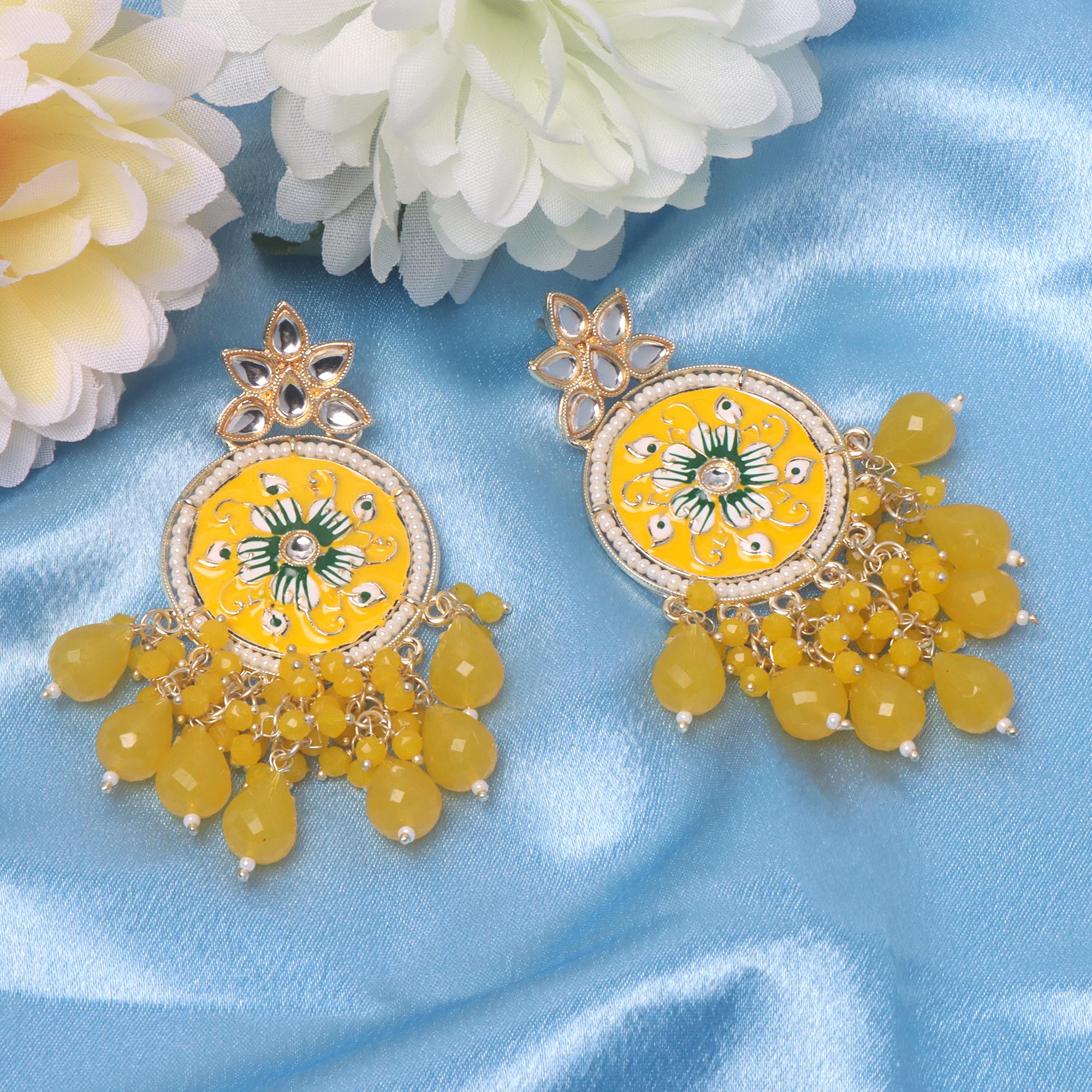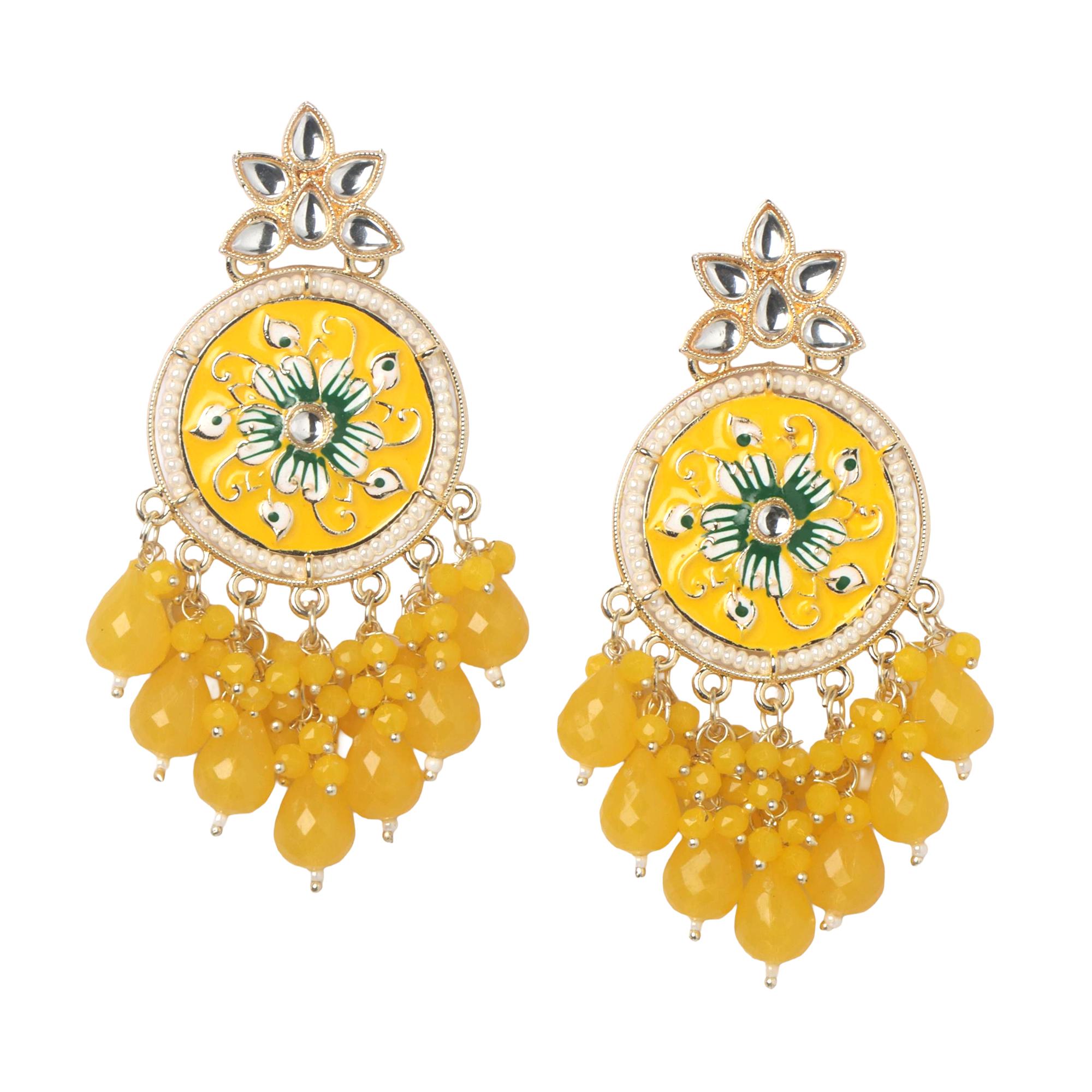 OrnaOra Traditional Meenakari Chandbali Earrings for Women | Ethnic Festive & Wedding Jewelry | Lightweight Party Wear Chandbali Design - Yellow
