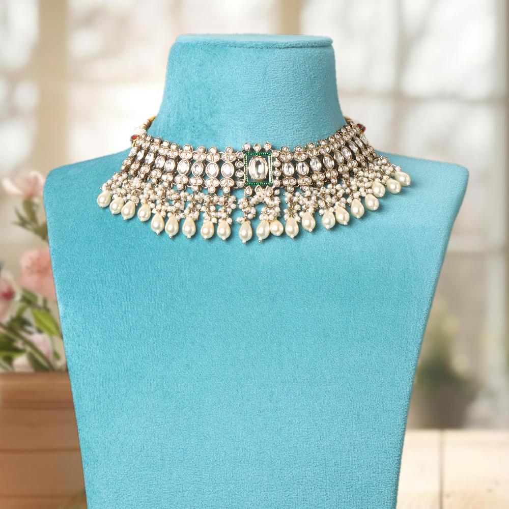 OrnaOra suggests pairing this imitation jewelry set with traditional attire like a red saree or lehenga for a timeless festive look.