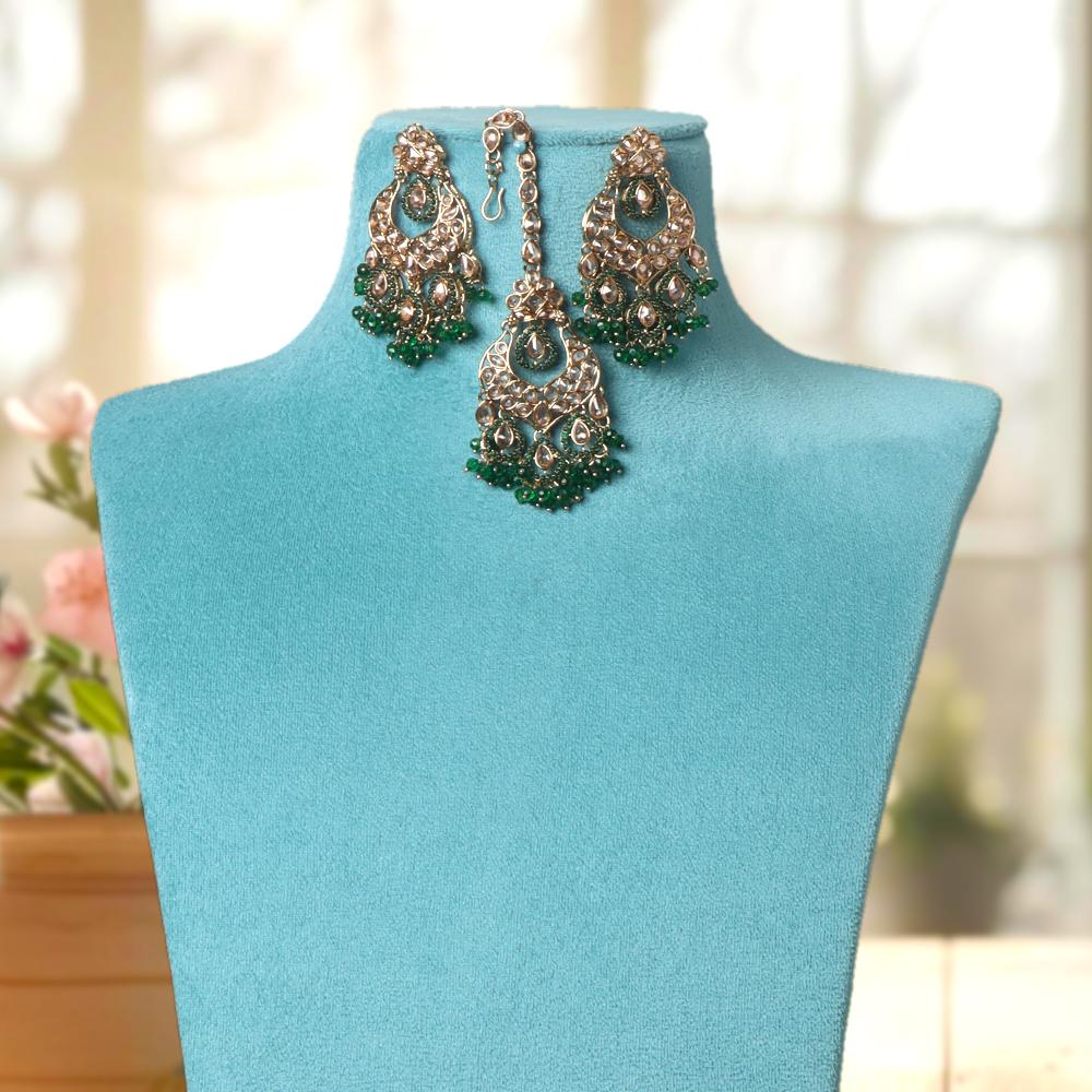 OrnaOra suggests pairing this imitation jewelry set with a rich silk saree or a grand lehenga for a sophisticated and traditional appearance. The maang tikka adds a regal finishing touch.