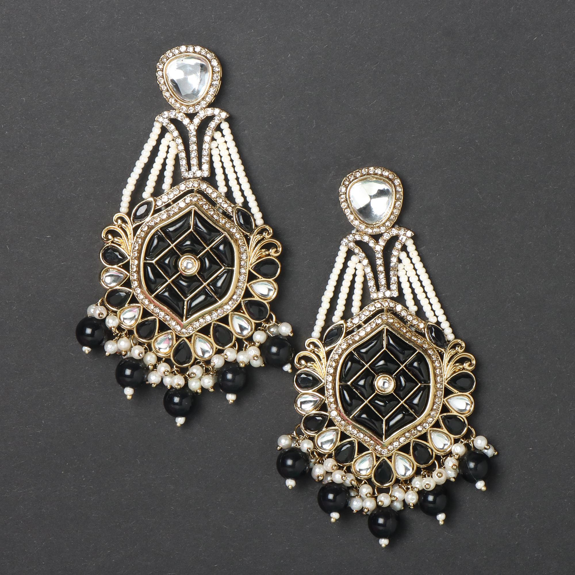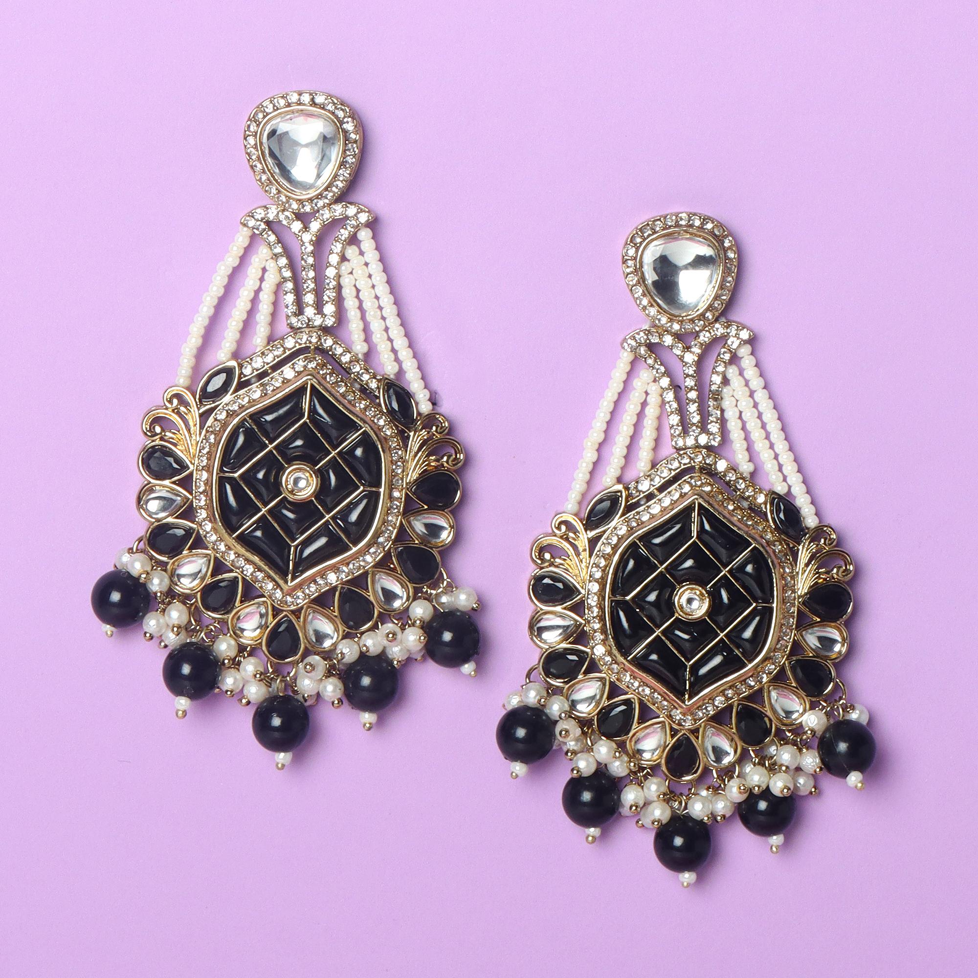 OrnaOra suggests pairing these gorgeous imitation black danglers with black, gold, or contrasting coloured ethnic wear for weddings or formal events. Make a statement.