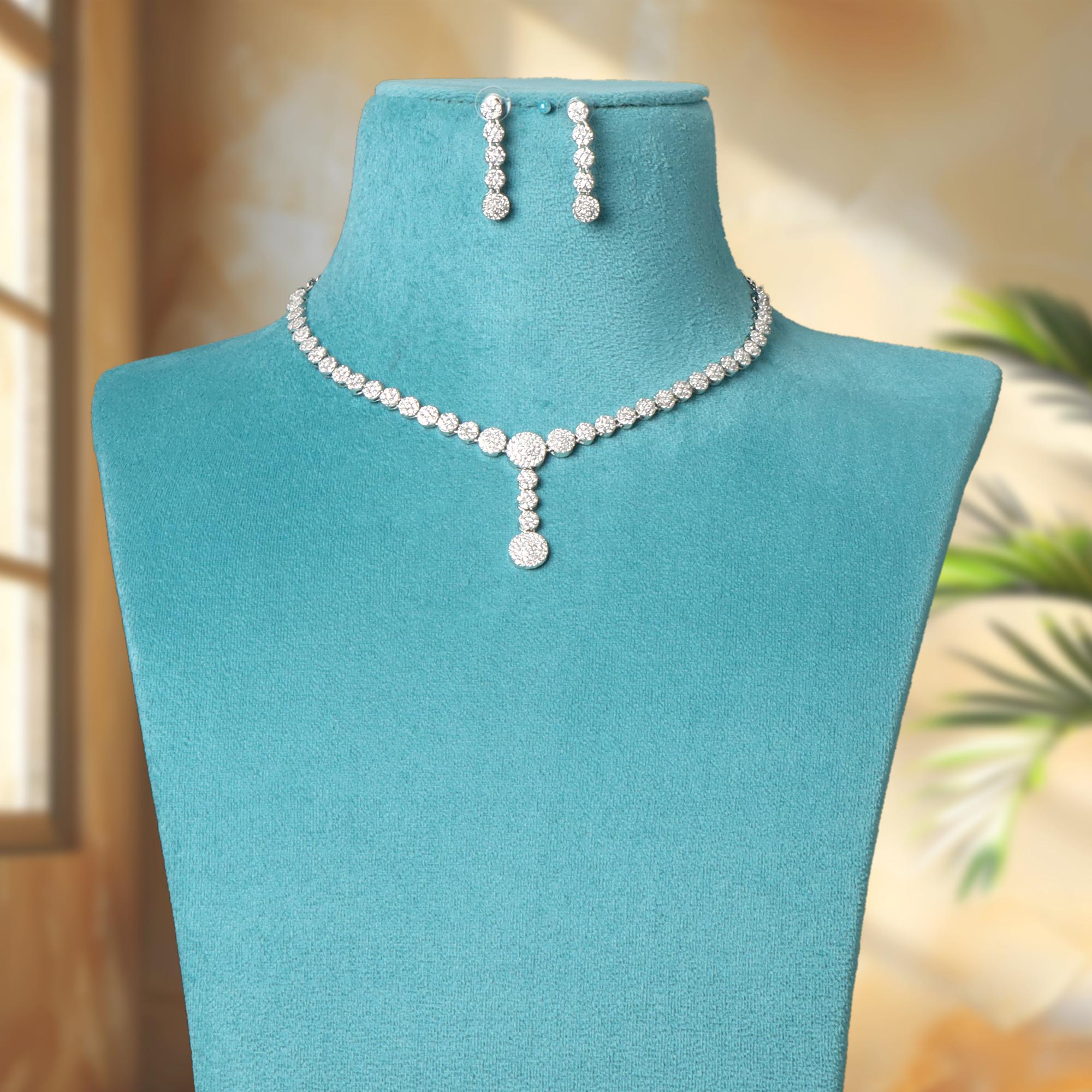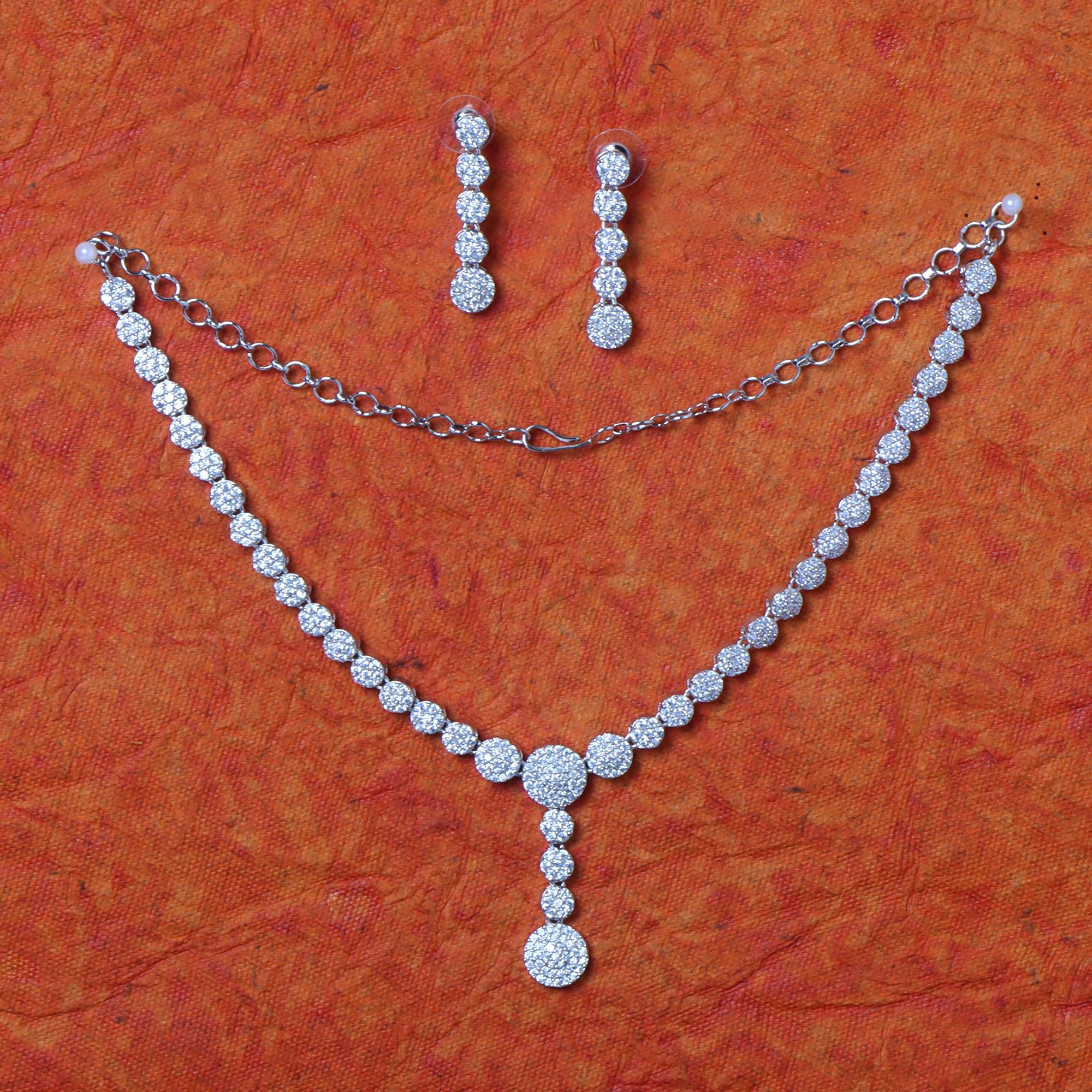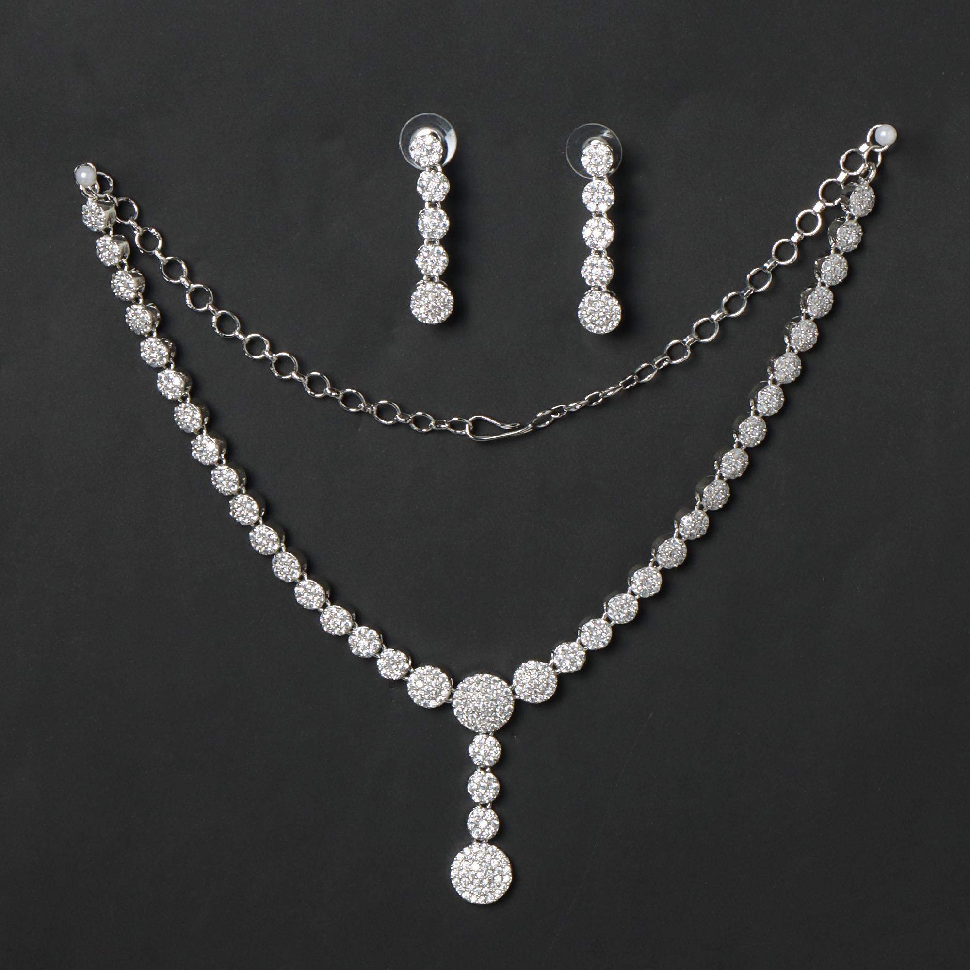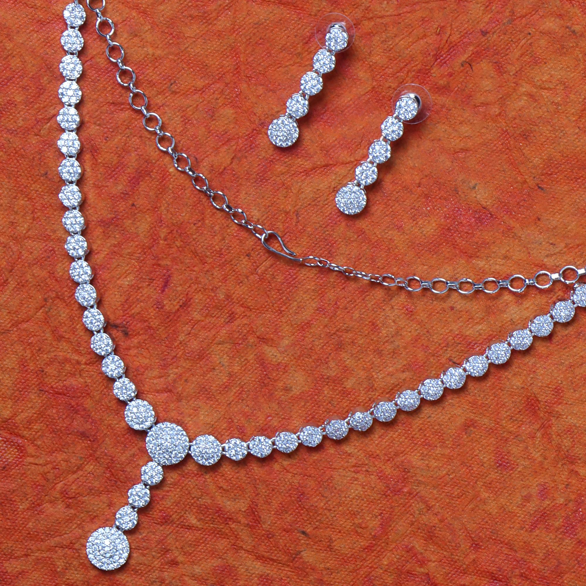 OrnaOra's dazzling Silver Plated AD Studded Jewellery Set features sparkling stones in elegant clustered designs. Includes a beautiful necklace and matching dangle earrings. Perfect for adding radiant shine.