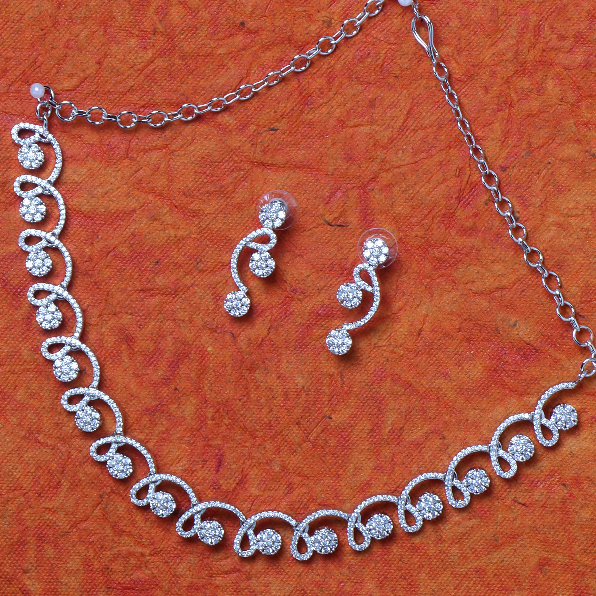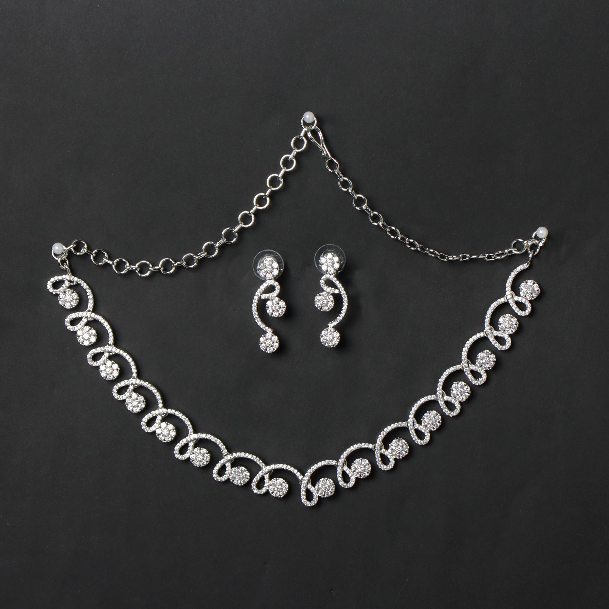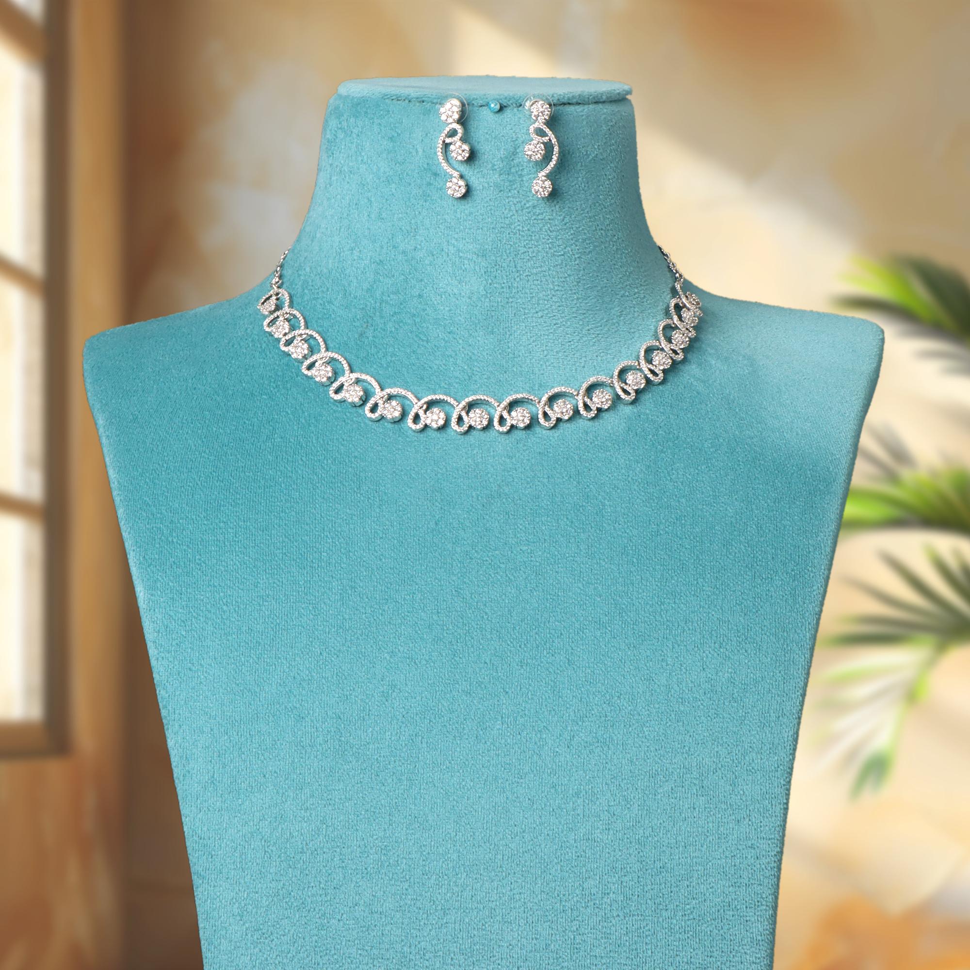 OrnaOra's delicate Silver Plated Zircon Jewellery Set features sparkling Zircon stones in an elegant swirling design. Includes a beautiful necklace and matching dangle earrings. Perfect for subtle glamour.